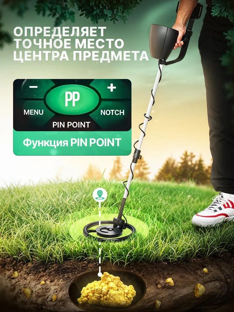 • Максимальная глубина поиска: 20–30 см (зависит от грунта и цели).