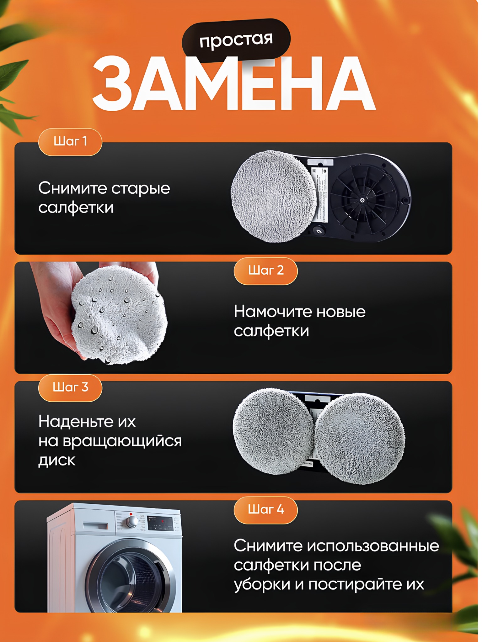 Набор многоразовых салфеток из микрофибры предназначен для использования с различными моделями роботов-мойщиков окон. Материал эффективно впитывает влагу и удаляет загрязнения, не оставляя разводов. Салфетки легко очищаются вручную или в стиральной машине, выдерживая множество циклов стирки без потери формы и свойств.