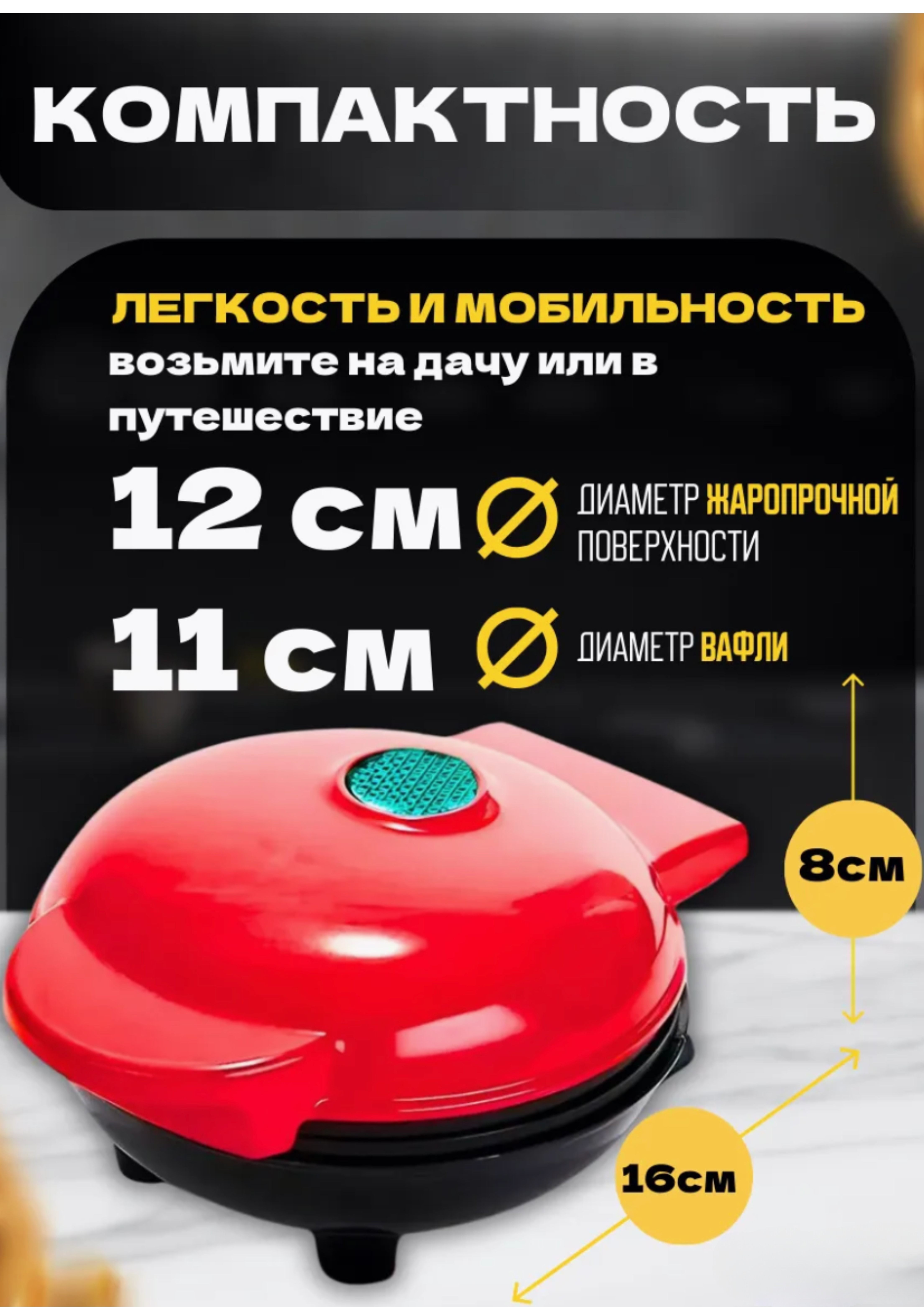 Лёгкая, занимает мало места, оснащена защитой от перегрева и удобными индикаторами.Эта компактная вафельница — отличный выбор для быстрого и вкусного завтрака. Благодаря антипригарной поверхности диаметром 12 см, вы легко приготовите не только вафли, но и омлеты, сэндвичи, картофель, печенье и многое другое. Устройство оснащено индикатором нагрева и термостойкой ручкой, что делает использование безопасным и комфортным. Легкий вес и небольшой размер позволяют брать её с собой в поездки, а стильный красный дизайн украсит любую кухню.