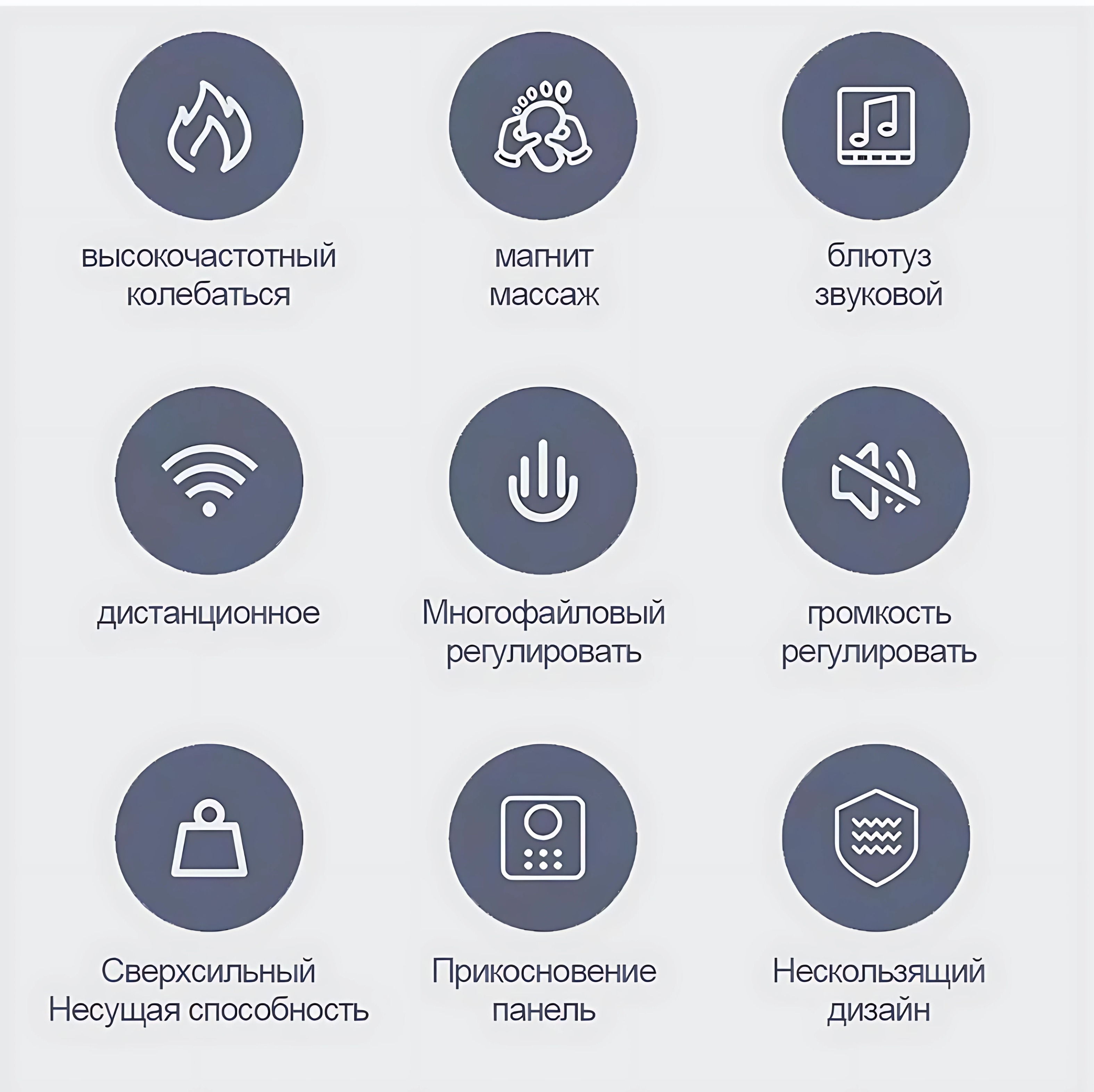 Платформа оснащена противоскользящей зоной с массажными элементами и магнитами, а также съемными эспандерами для проработки верхней части тела. Поддержка Bluetooth и USB-разъёма позволяет слушать любимую музыку во время занятий. Управление возможно как с помощью пульта ДУ, так и через LED-дисплей.
