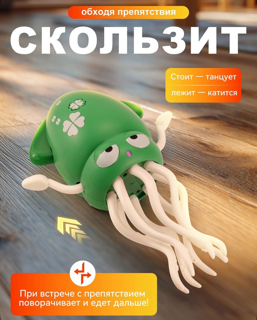 Танцующий осьминог интерактивный, с функцией обхода препятствий и музыкальным сопровождением