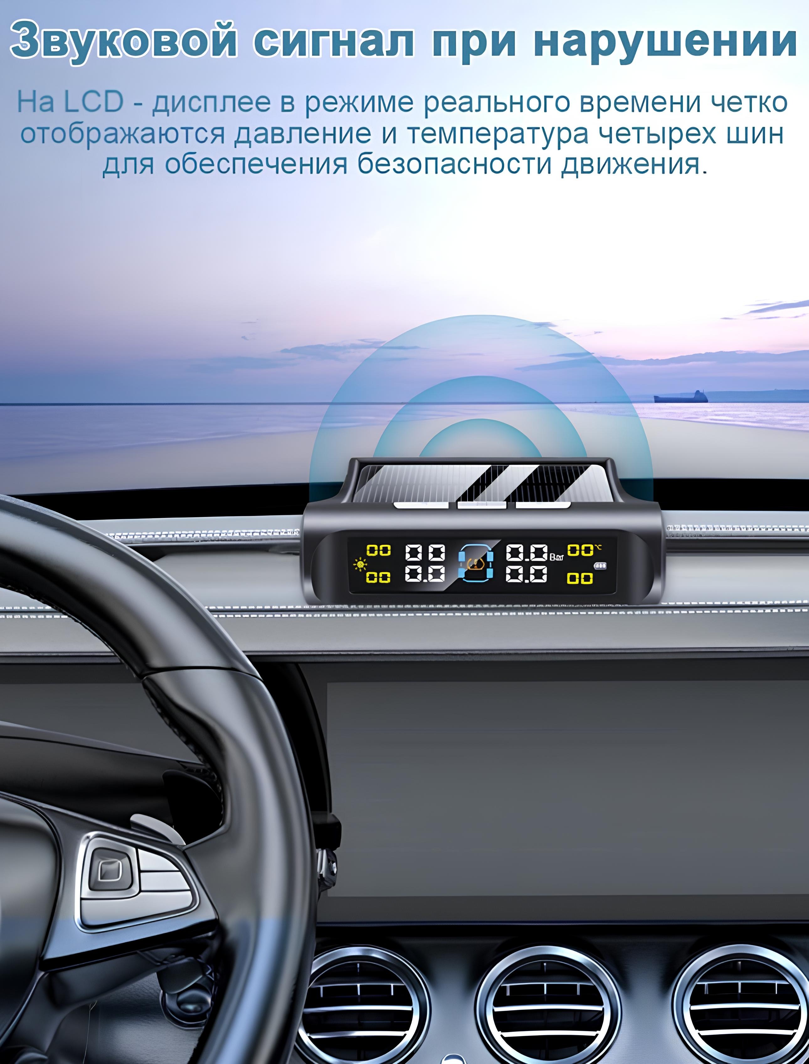 Система обеспечивает постоянный мониторинг состояния шин автомобиля, повышает безопасность движения и продлевает срок службы покрышек. Оснащена солнечной панелью для зарядки, не требует подключения к бортовой сети, удобна в использовании и проста в установке.