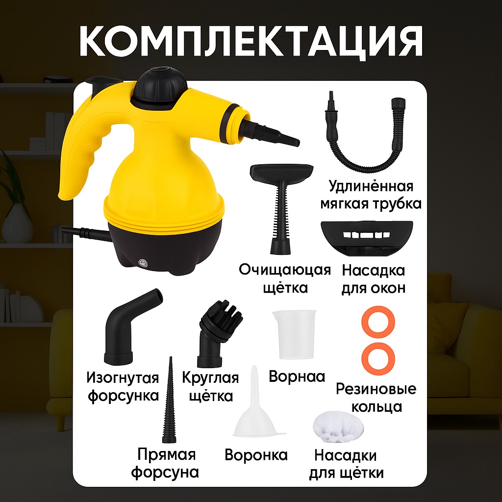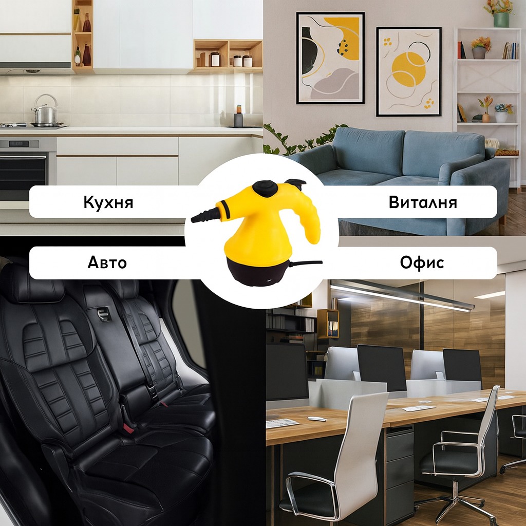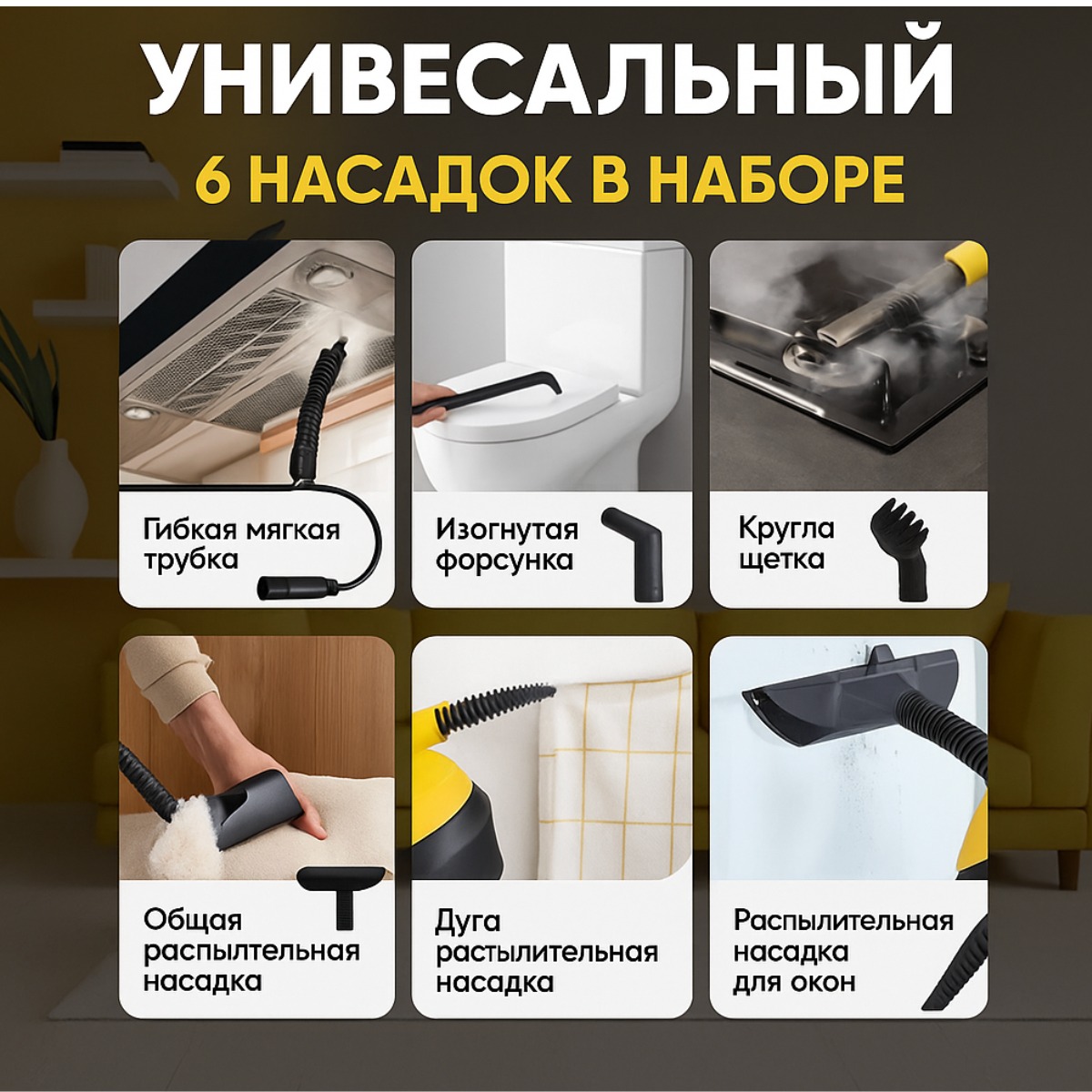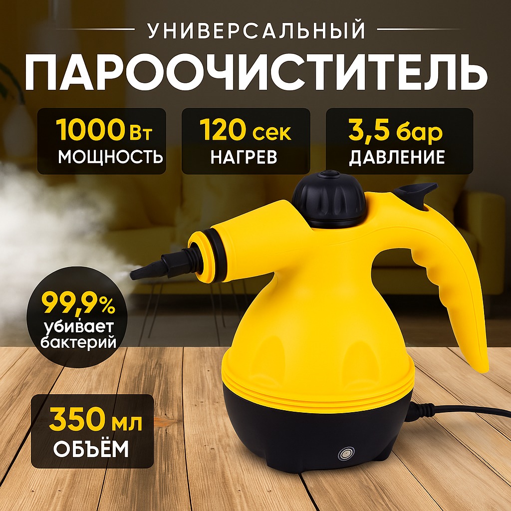 Пароочиститель 1000 Вт ручной с 6 насадками, подходит для дома и машины