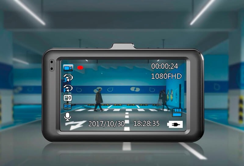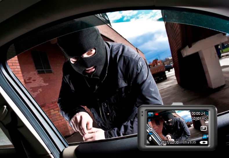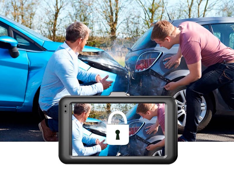 Во время экстренного торможения или столкновения акселерометр реагирует на серьезные повреждения и начинает автоматическую запись происшествия, которая не прекратится, даже если SD-карта будет полностью заполнена.
