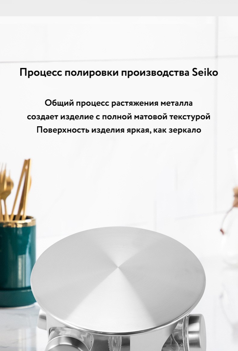 Подставка для специй изготовлена из нержавеющей стали и может вращаться по кругу, что очень удобно и практично.