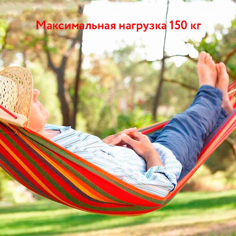 Этот яркий гамак будет дополнять красоту вашего сада. Отдых в гамаке подарит Вам особое чувство свободы и невесомости, позволит расслабиться мышцам спины и шеи, почувствовать душевный комфорт.Подвесной гамак для отдыха имеет в комплекте удобную сумку для транспортировки и хранения. Изготовлен мексиканский гамак из плотной хлопковой ткани, имеет очень яркий полосатый окрас. При окрашивании используются нетоксичные натуральные красители, которые не линяют и не вызывают раздражений на коже.