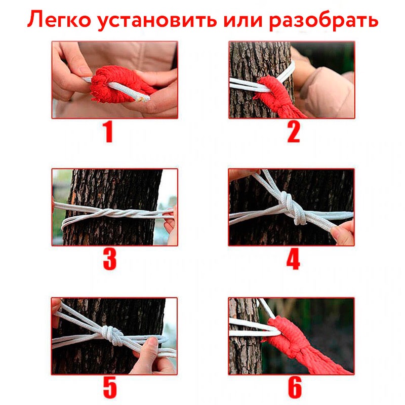 Простой монтаж: Крепления позволяют быстро повесить гамак между деревьями, на балконе или на специальной стойке.