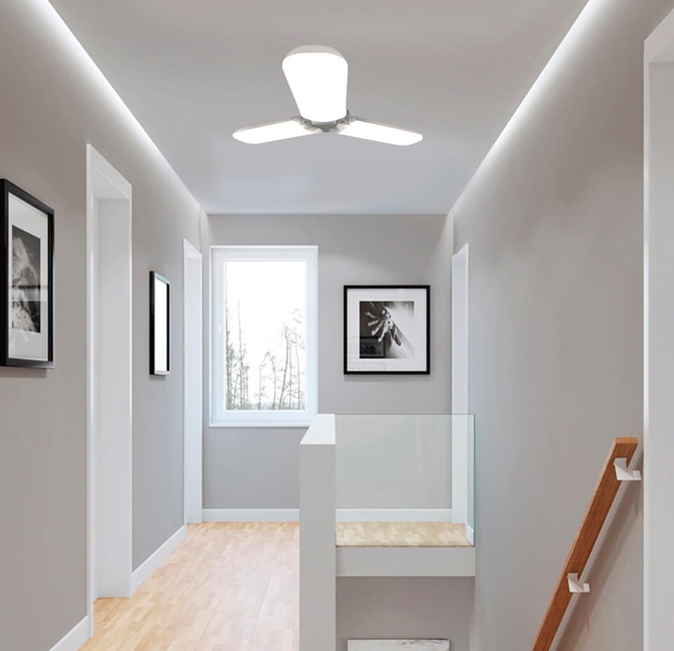 С данной моделью лампы вы внесете в дизайн вашего дома яркую и полезную изюминку, способную сохранить до 80% энергии по сравнению с традиционными лампами накаливания.Помимо оригинальной конструкции, светодиодная лампа экологичная и энергосберегающая, срок службы которой составляет 40000 часов. Все лопасти лампы могут быть сложены на 90 градусов. Лапму легко хранить, когда она не используется.