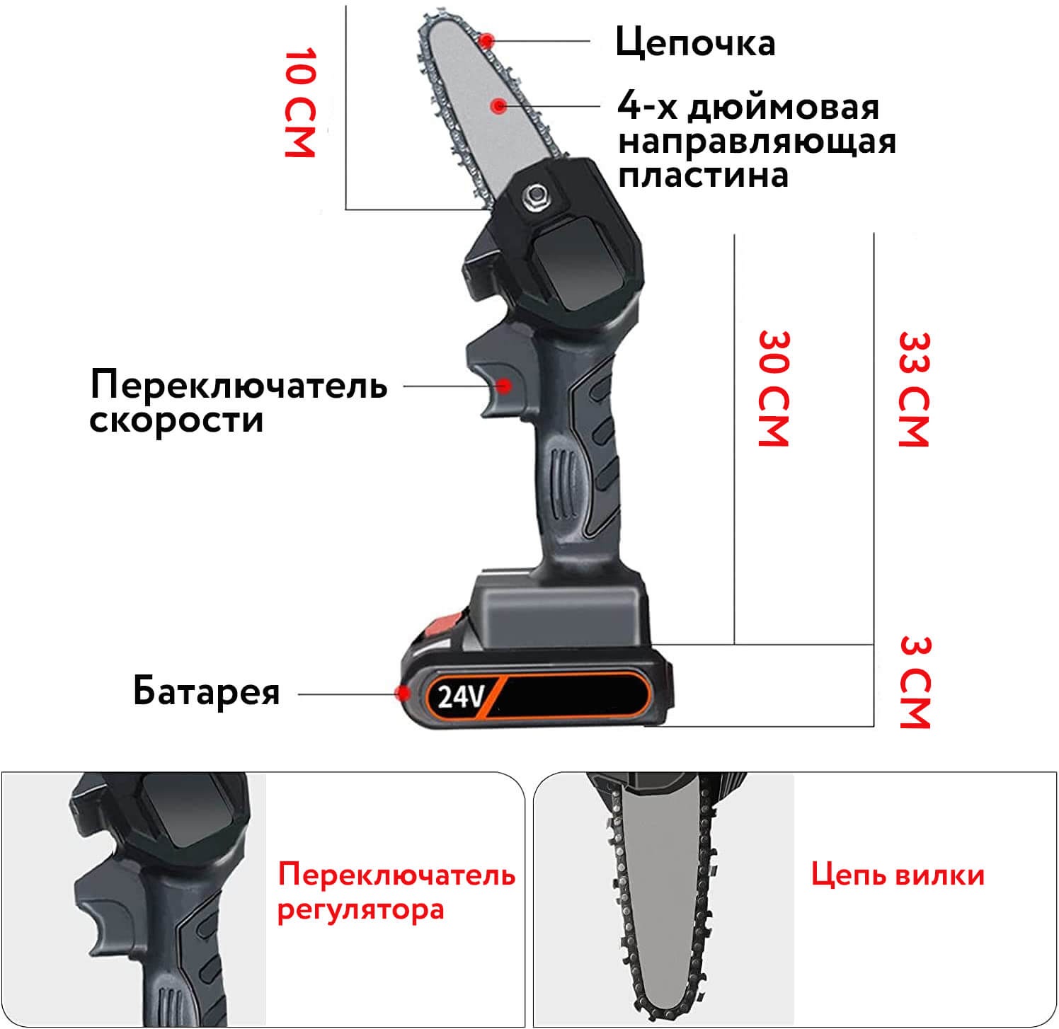 | Наименование товара | Аккумуляторная цепная мини-пила |