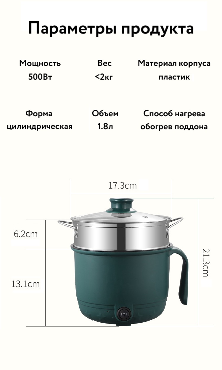 | Наименование товара | Электрическая мультиварка с мощностью 500W и объемом 1.8 л |
