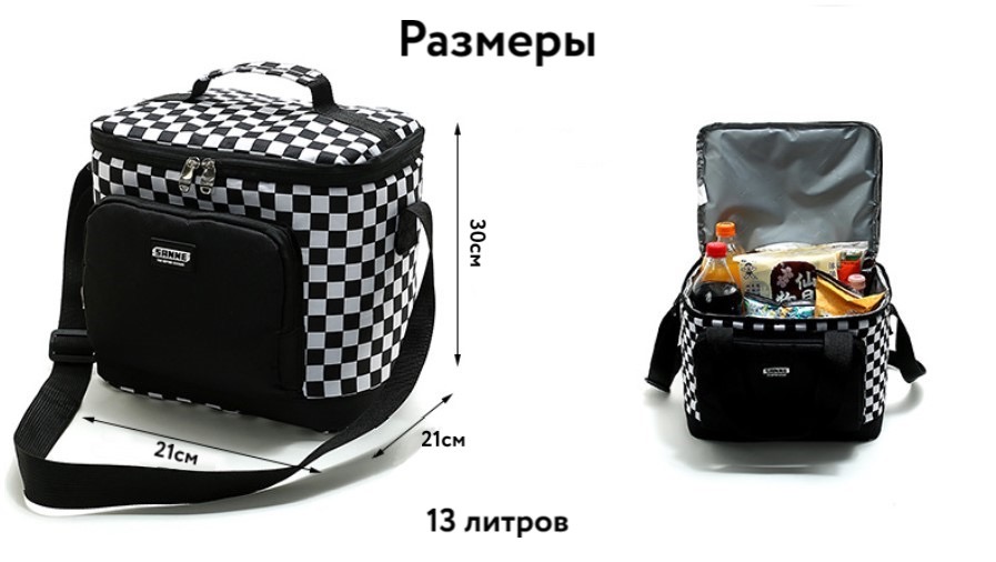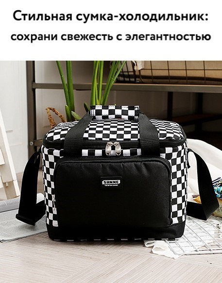 Термосумка 13 литров 30x21x21 см. Сумка-холодильник шахматный принт.