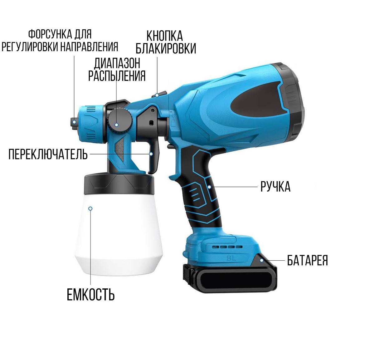 Краскопульт электрический 24v с аккумулятором.