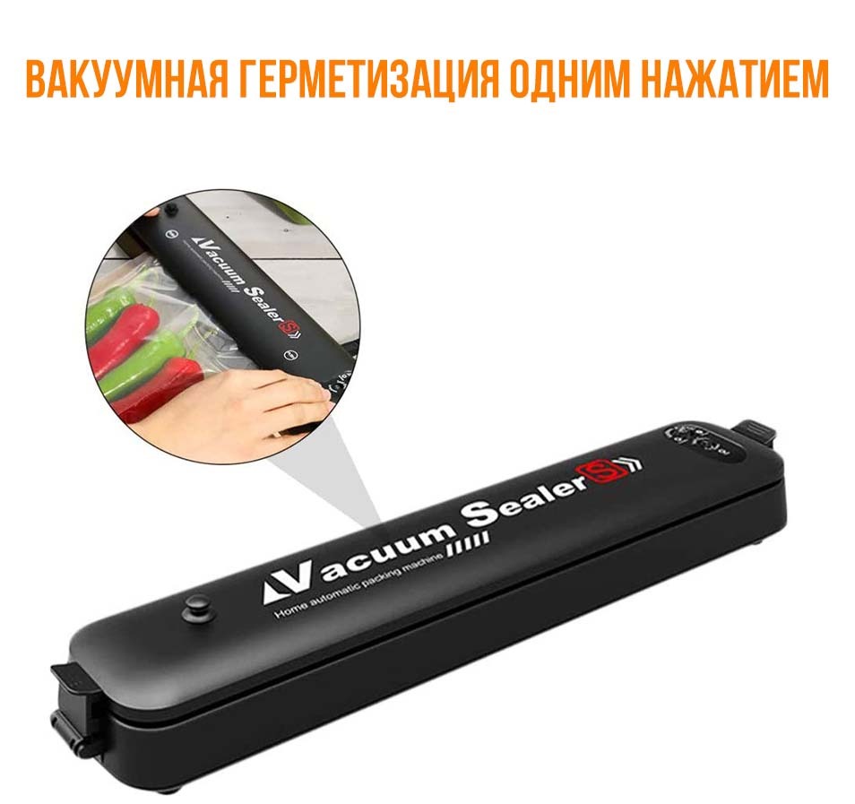Вакуумная герметизация одним нажатиемВакуумный упаковщик – лучшее решение для хранения продуктов в морозильных и холодильных камерах. Вакуумная упаковка сохраняет еду свежей в течение длительного времени, защищает продукты от бактерий, избытка влаги, плесени и обморожения.