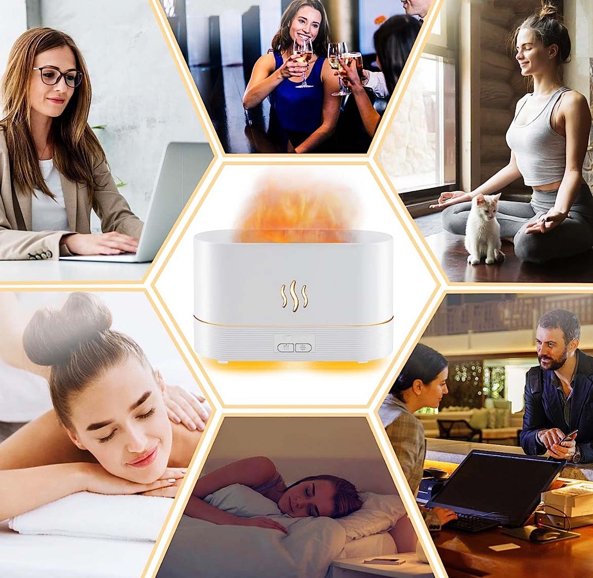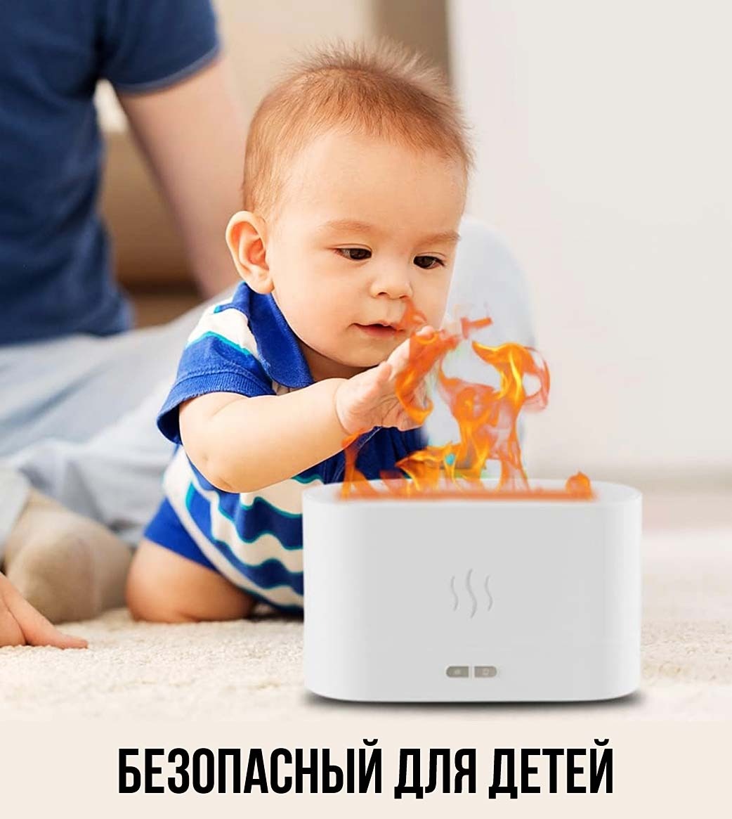 Также может использоваться в качестве аромадиффузора, который распыляет ароматические масла в воздухе, что создает приятную атмосферу в помещении. Функция имитации пламени добавляет эстетическую составляющую, создавая впечатление настоящего огня, при этом не производит никакого тепла, что делает устройство безопасным для использования, можно настроить любой цвет пламени.