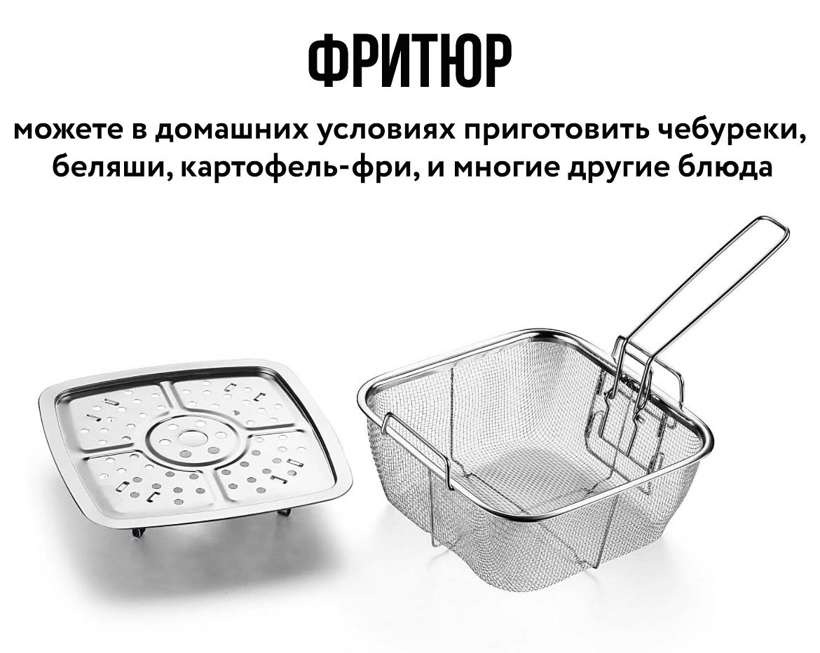 Фритюр – Применяя корзину для фритюра вы можете в домашних условиях приготовить настоящие чебуреки, беляши, картофель-фри, пончики пончики и многие другие блюда без содержания вредных канцерогенов, выделяемых при жарке.