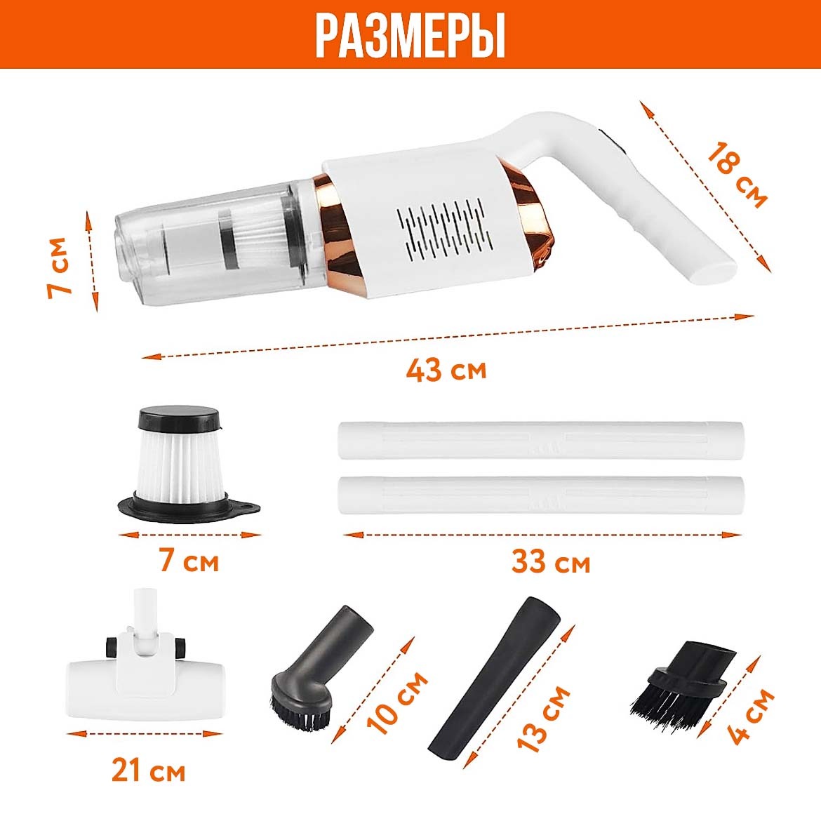 Аккумуляторный беспроводной пылесос 120W с насадками