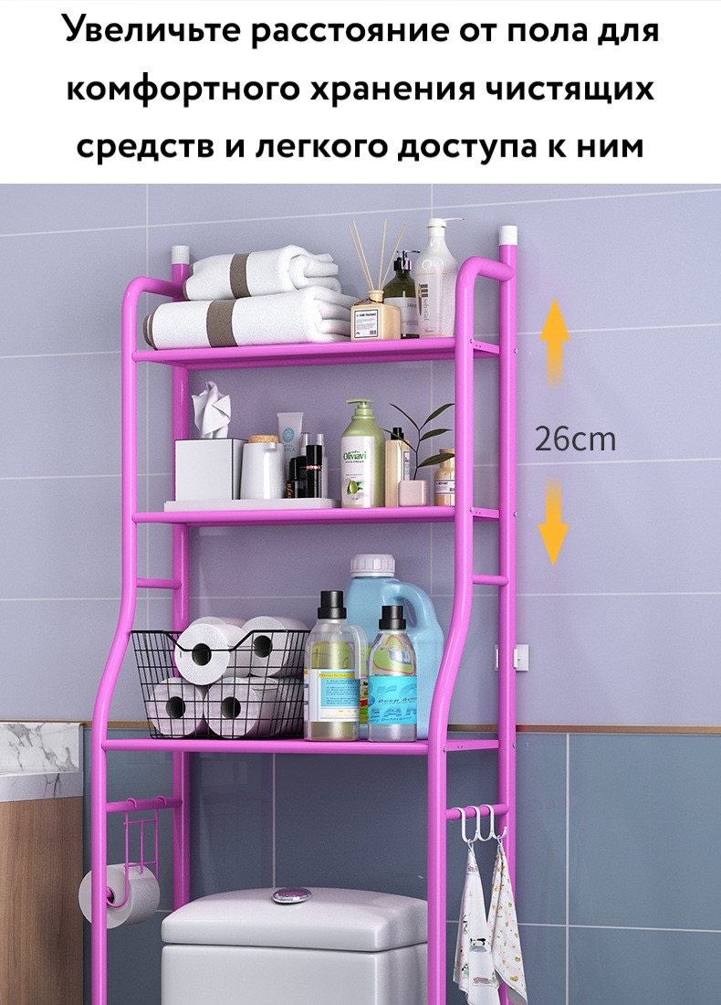 Компактная туалетная стойка устанавливается над унитазом и совсем не будет мешать – ведь полки свисают не над вашей головой, а над бачком.Преимущества туалетной стойки для унитаза: