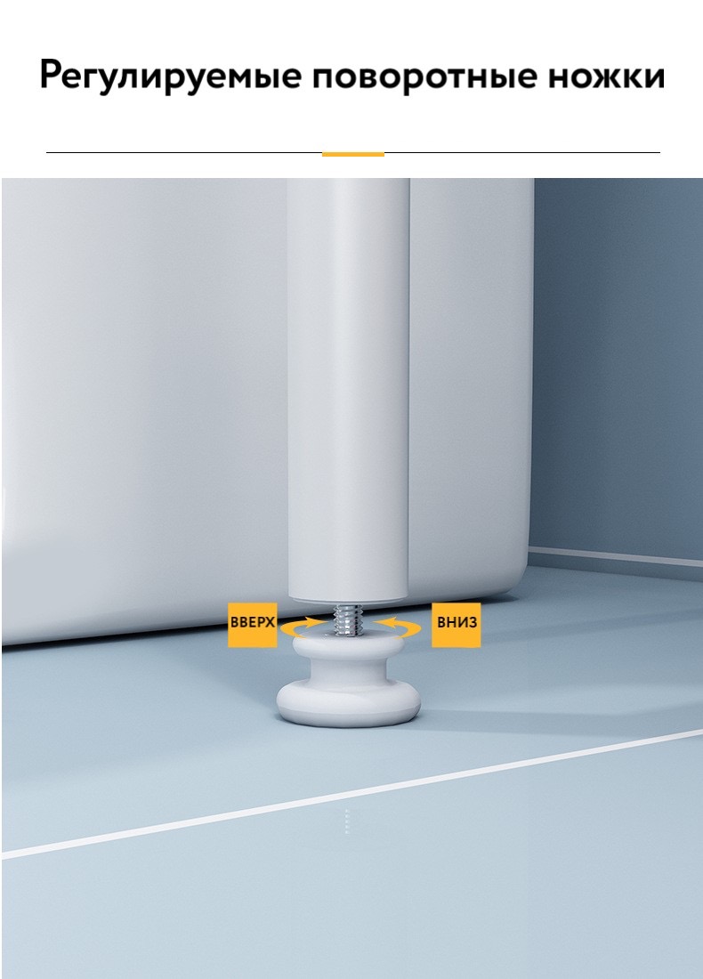 Изящная конструкция совершенно не загромождает пространство, в отличие от настенного шкафа. При этом стойка достаточно вместительная. Вы сможете удобно расположить чистящие средства, хозяйственные аксессуары, косметику и банные принадлежности.