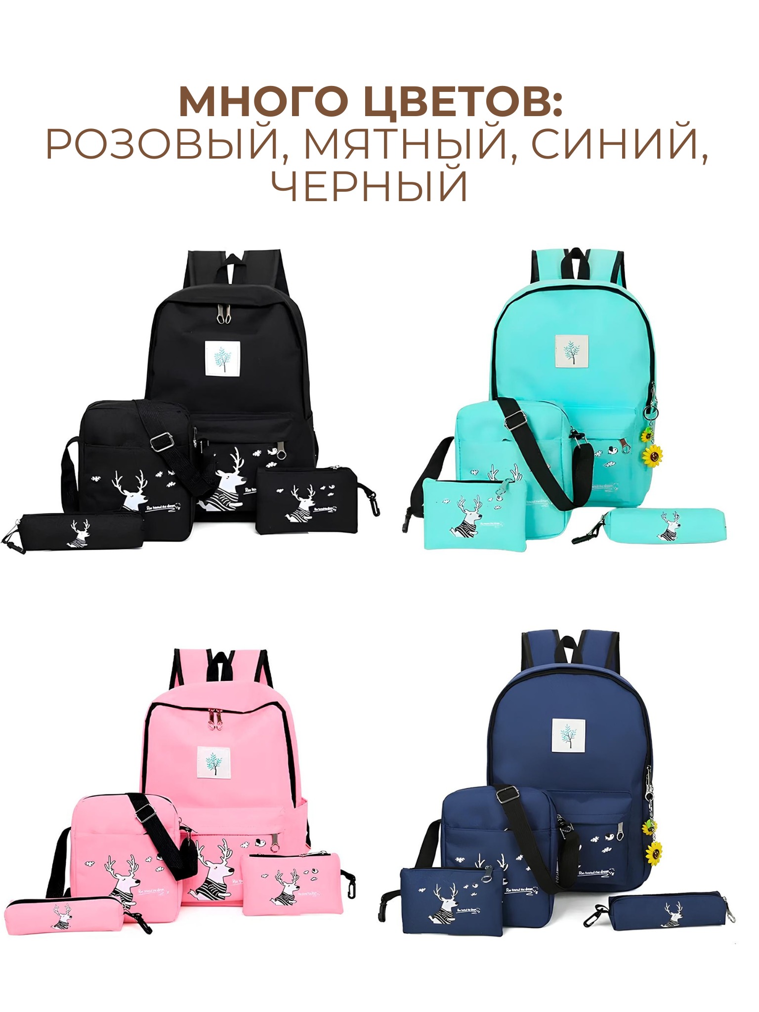Модный набор 4 в 1 для школьников, вместительный рюкзак + сумка + косметичка + пенал. Рюкзак идеально подходит для школы и повседневного использования.