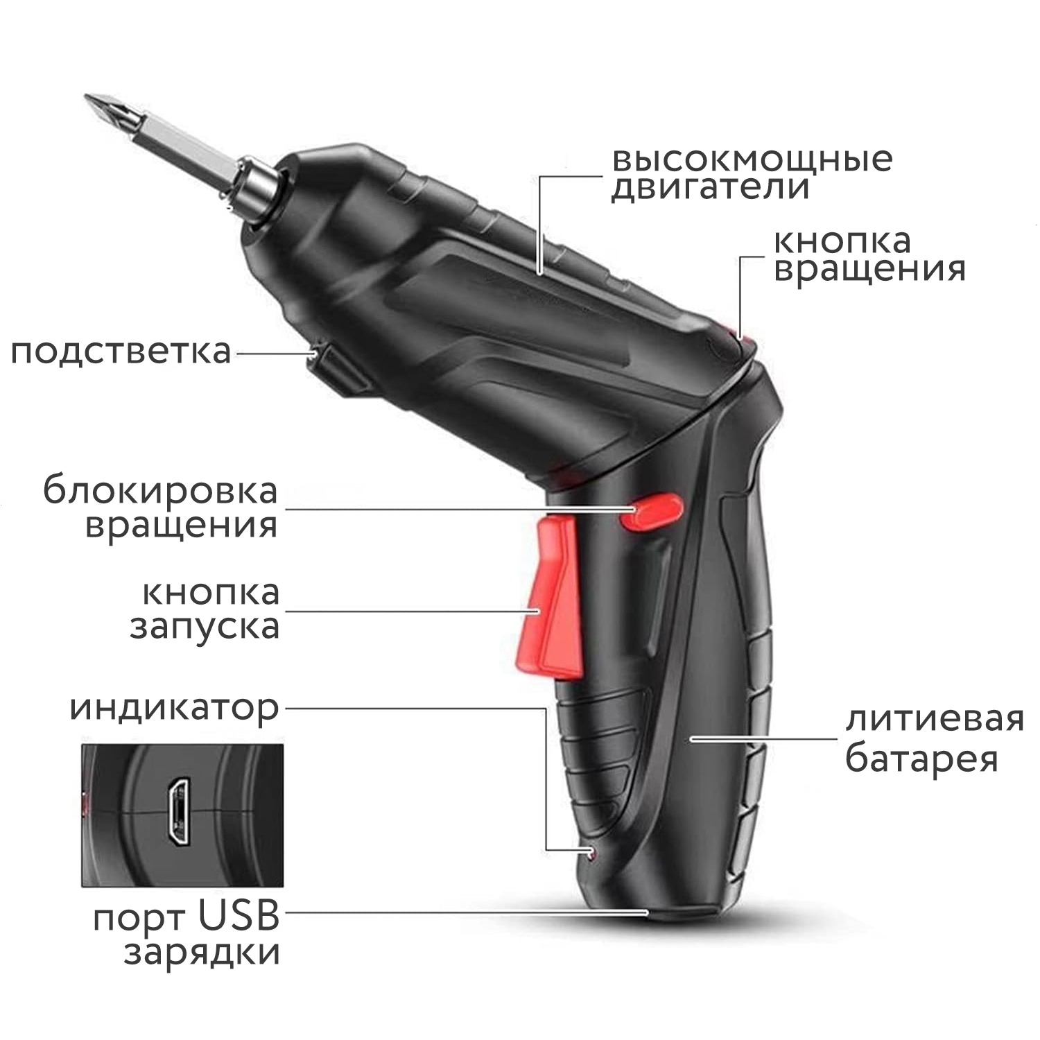 Электрическая отвертка трансформер, 48 элементов, мини-шуруповерт
