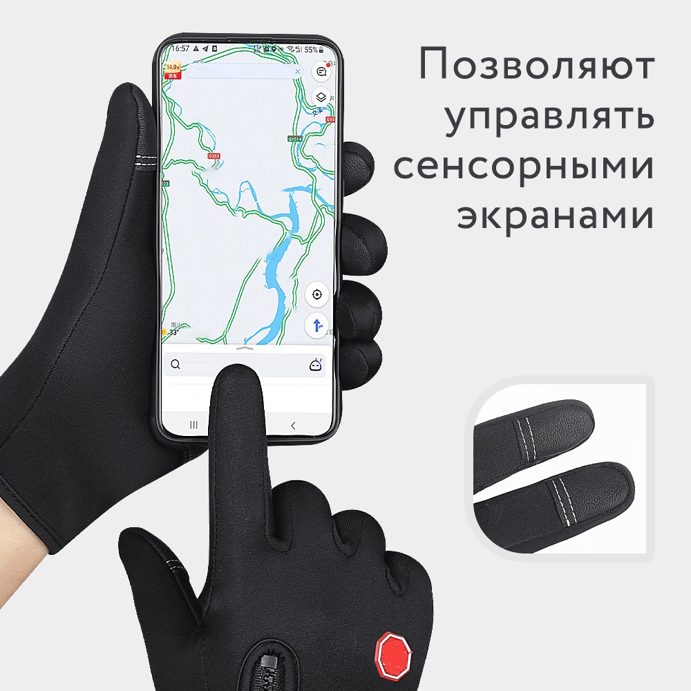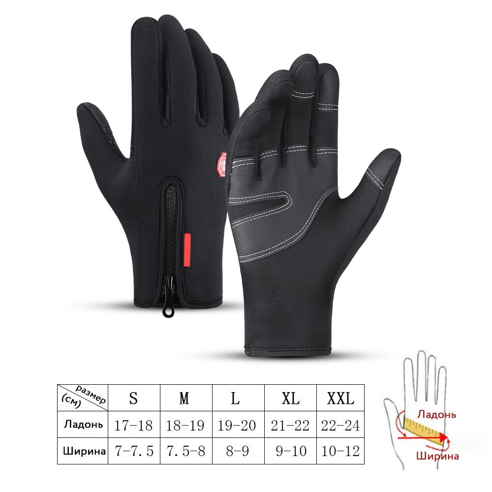 Водонепроницаемые, теплые зимние перчатки с сенсорными пальцами и молнией.