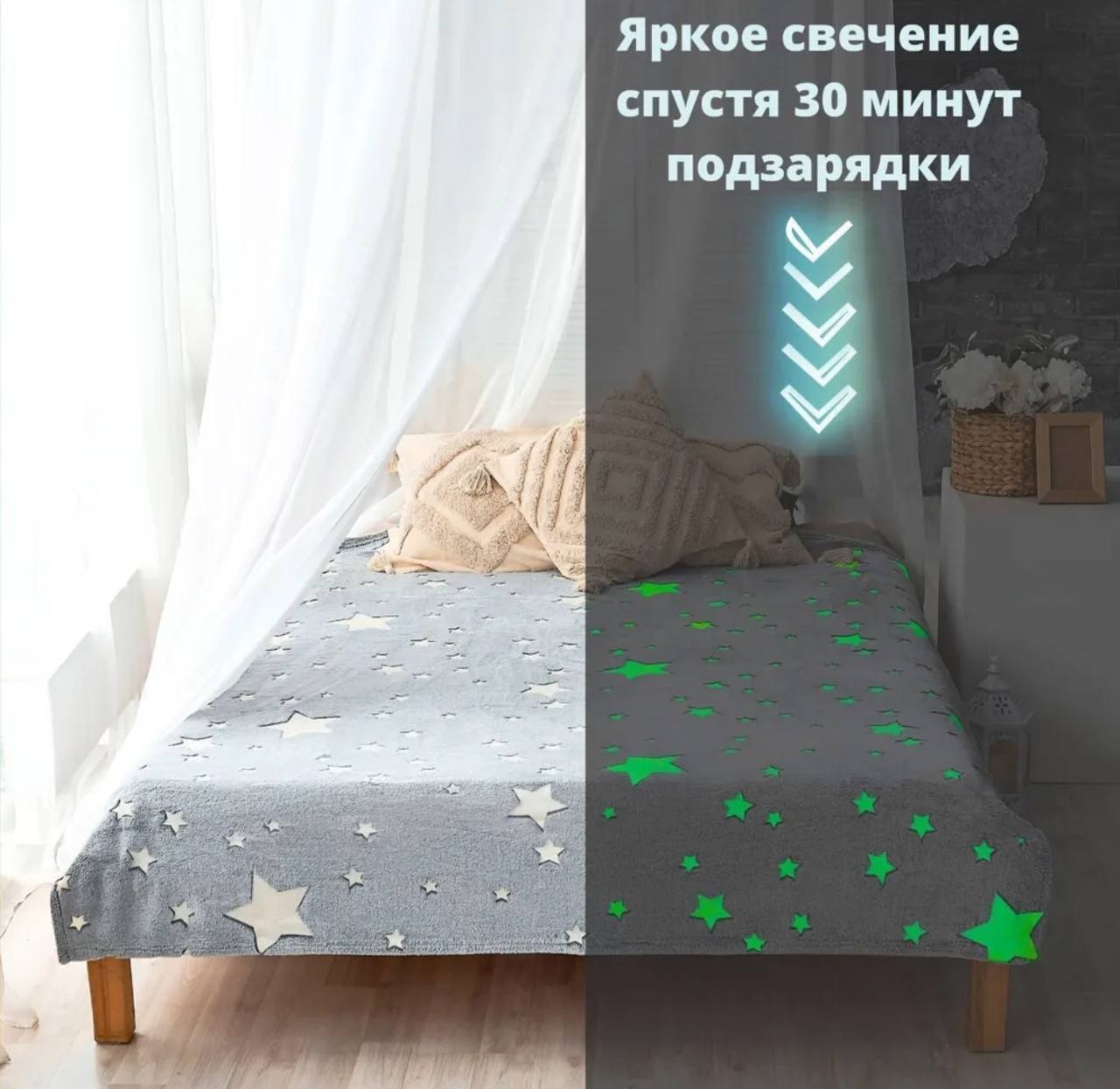 Уход; Стирка при температуре воды до 40 градусов. Без хлора. Не выкручивать. Не сглаживать Сушить в разложенном виде горизонтально.Плед «День-ночь» — это уникальные и уютные изделия, которые приятно светятся в темноте. Их можно использовать как покрывало для кровати, придавая ей элегантный и новый облик.