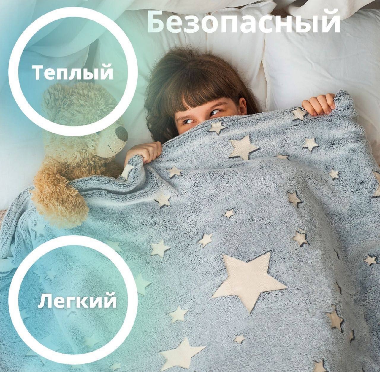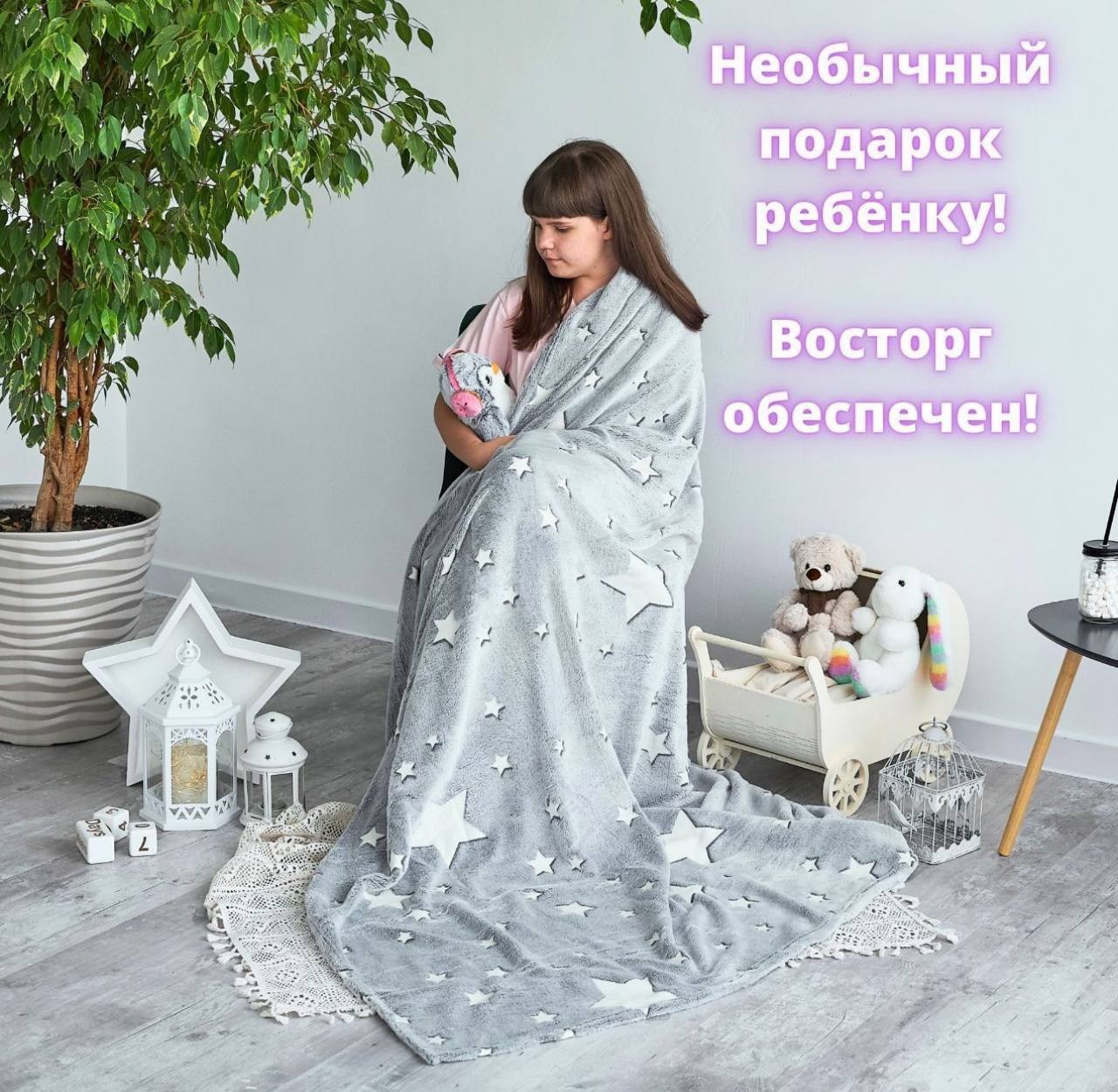 Стильный дизайн идеально впишется в любой интерьер. В таком пледе очень приятно укутаться на диване. Он не только приятен на ощупь, но и радует глаз: в темноте его поверхность освещается яркими звёздочками и планетами, создавая красивую и завораживающую атмосферу.
