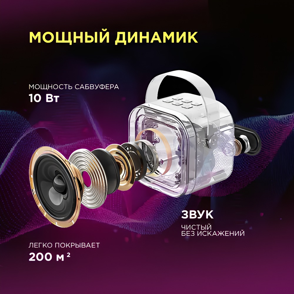 | Комплектация | Колонка, микрофон, кабель зарядки, упаковка |