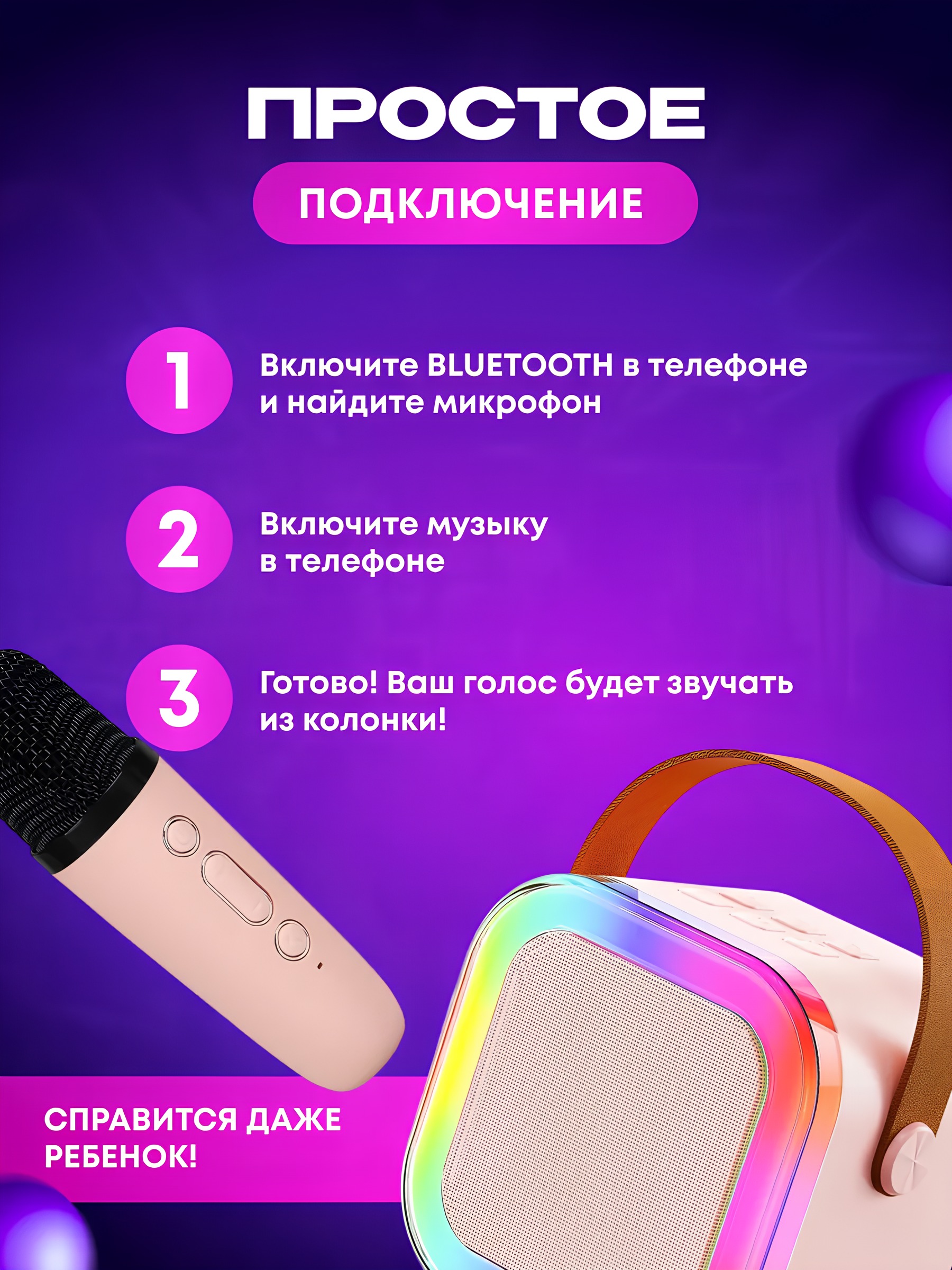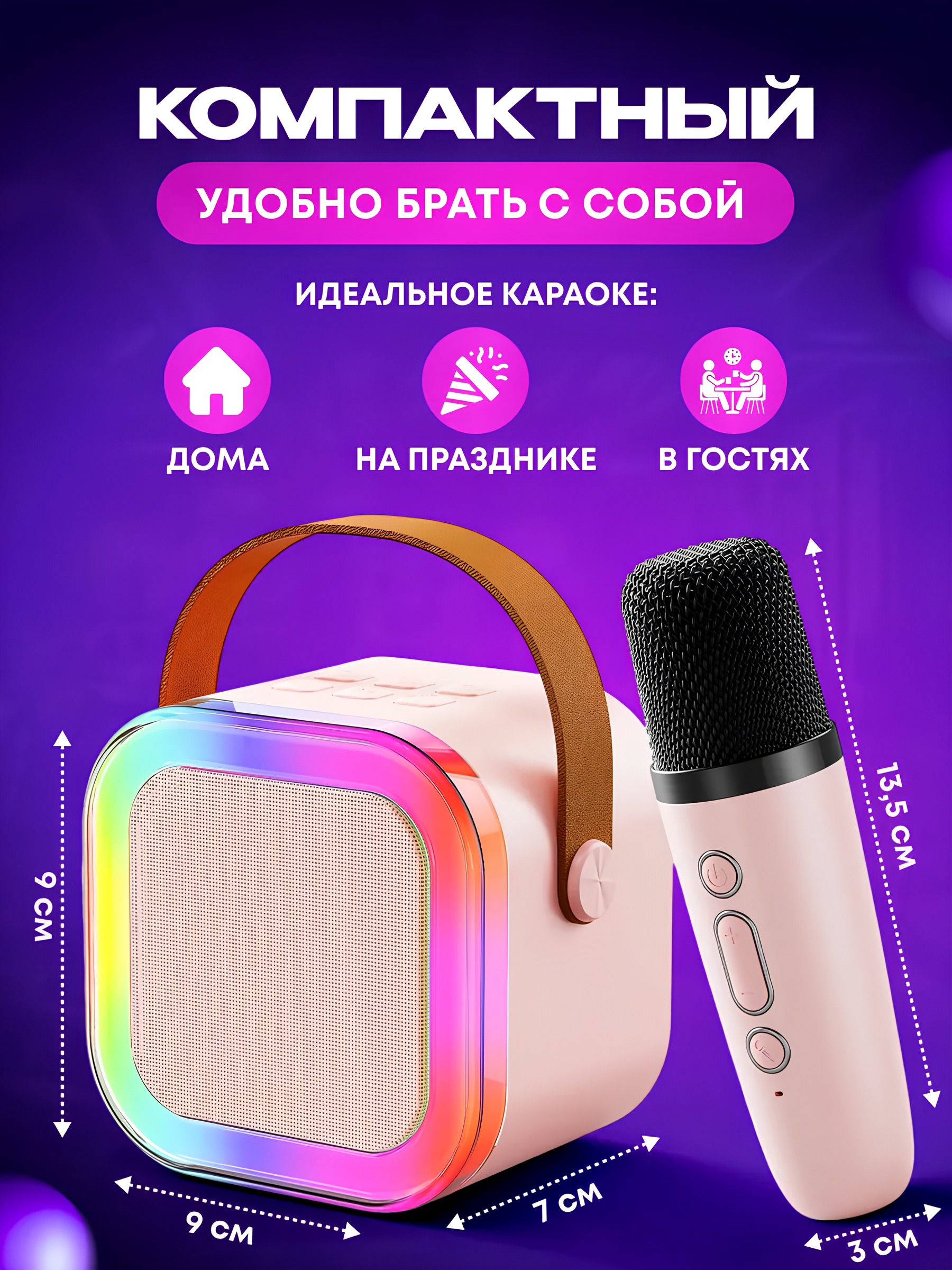 | Наименование товара | Караоке-колонка с RGB-панелью и беспроводным микрофоном K12 Розовая |