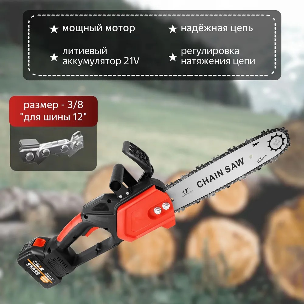 Аккумуляторная пила имеет легкий вес и удобно размещается в руке. Практичная, быстрая, с плавным пуском цепная мини электропила станет незаменимым помощником на приусадебном участке и на даче!