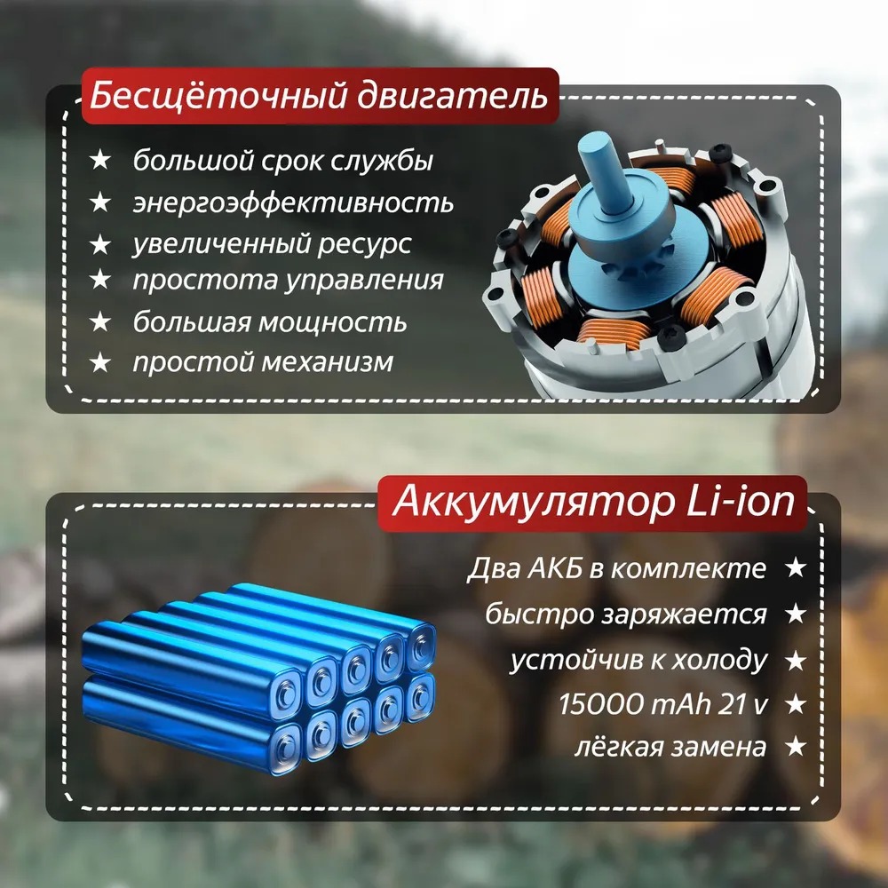 | Наименование товара | Аккумуляторная цепная пила 12 дюймов с двумя аккумуляторами в кейсе 48 V |