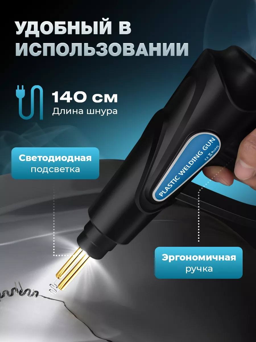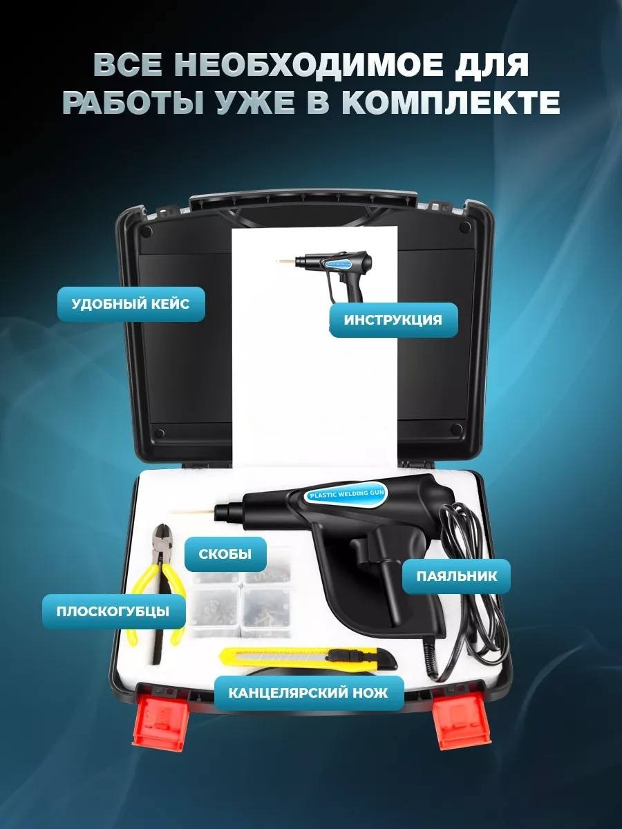 МГНОВЕННЫЙ РЕМОНТ: одной из основных преимуществ термостеплера является скорость и эффективность процесса соединения пластиковых деталей. Восстанавливайте сломанные детали и продлевайте срок их службы. Ударопрочность и стойкость к скручиванию после ремонта.