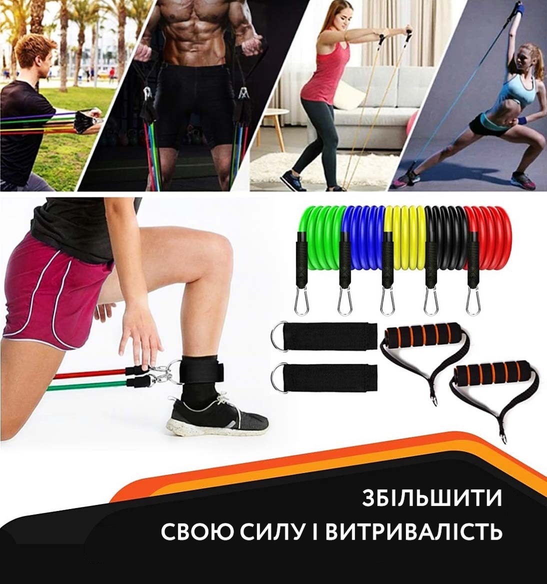 Також набір еспандерів використовуються для реабілітації після травм. Не містить шкідливих здоров'я речовин.