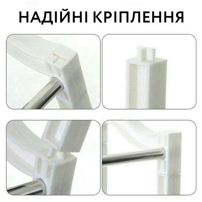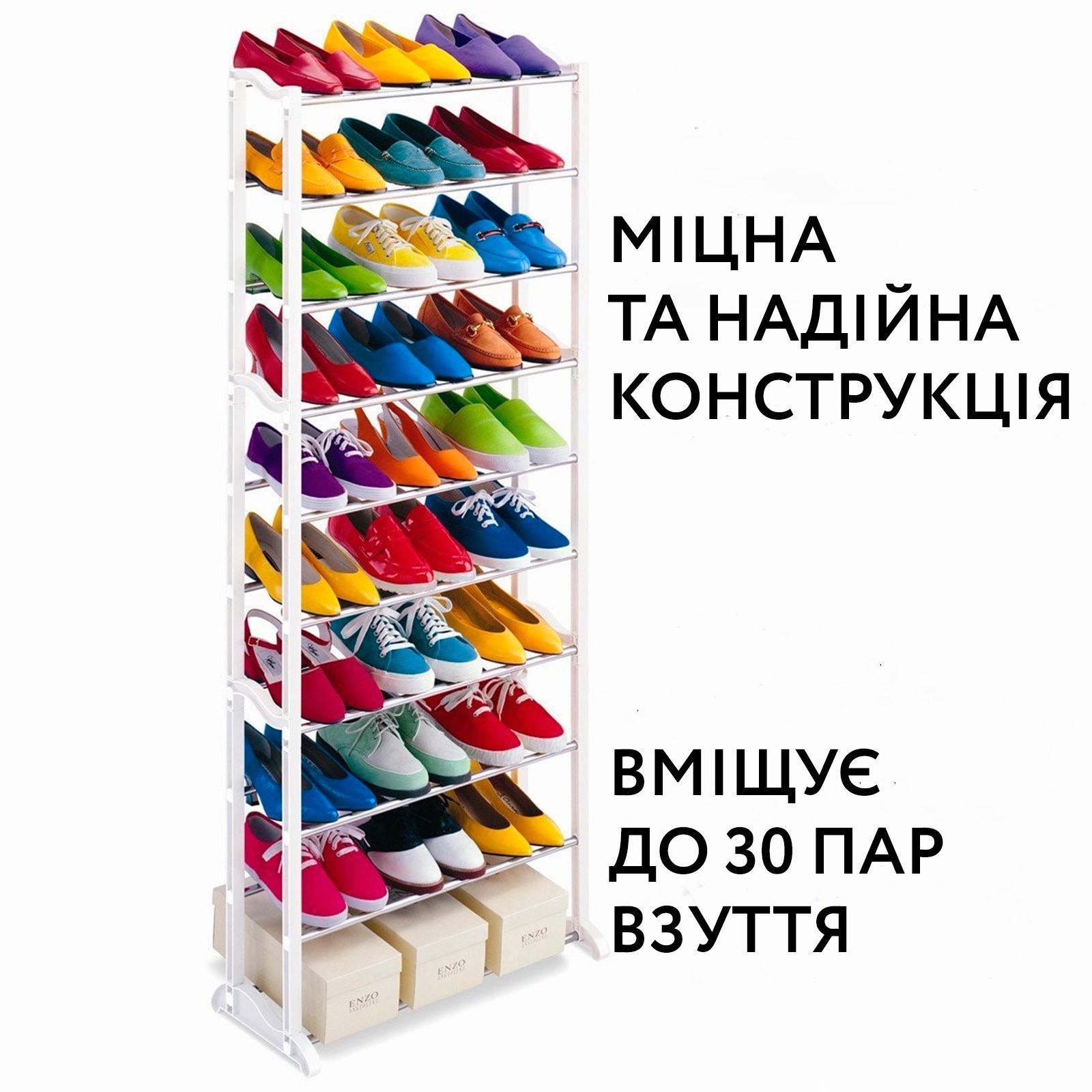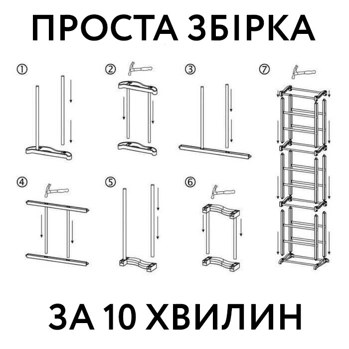 В результаті Ви отримуєте легку, але стійку мобільну конструкцію, яку можна легко пересувати з місця на місце. Органайзер-стійка для взуття стане відмінним доповненням Вашої передпокою, вбиральні, балкона або навіть кімнати.