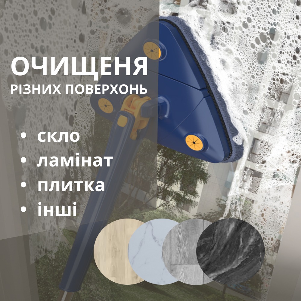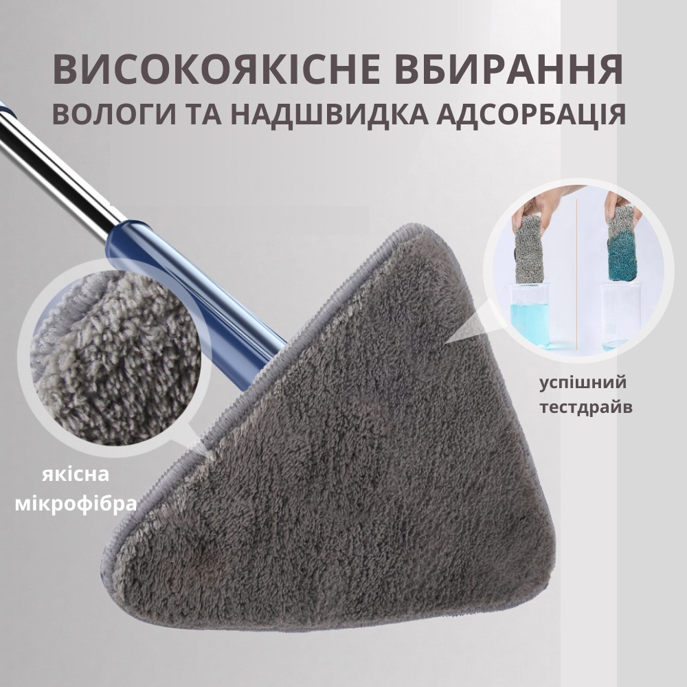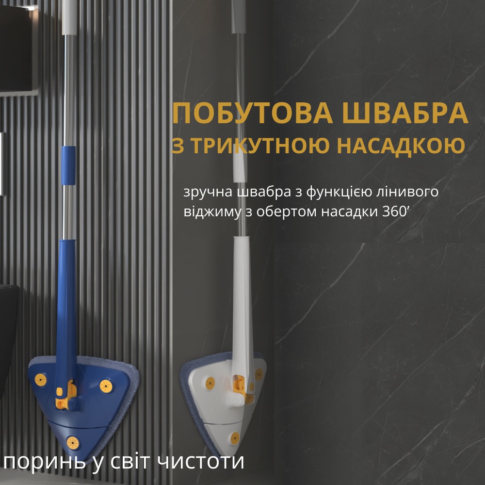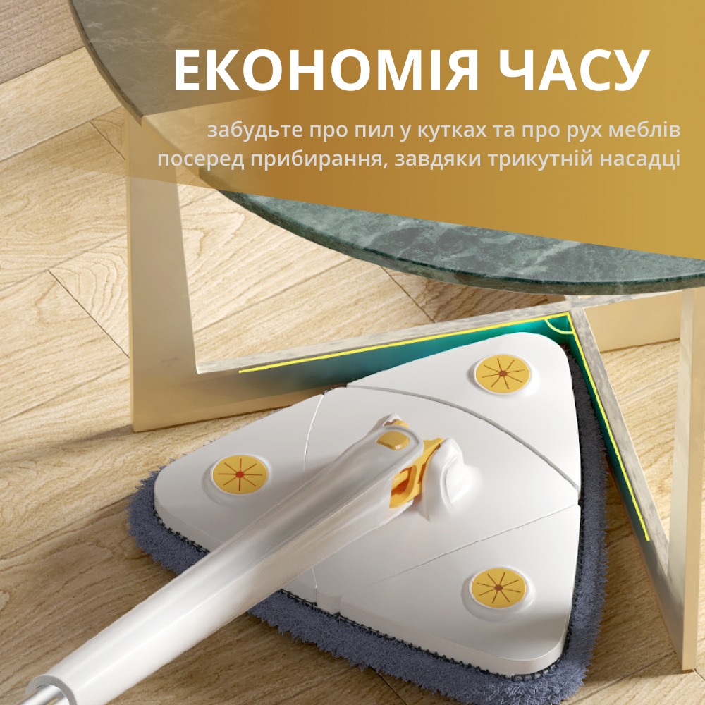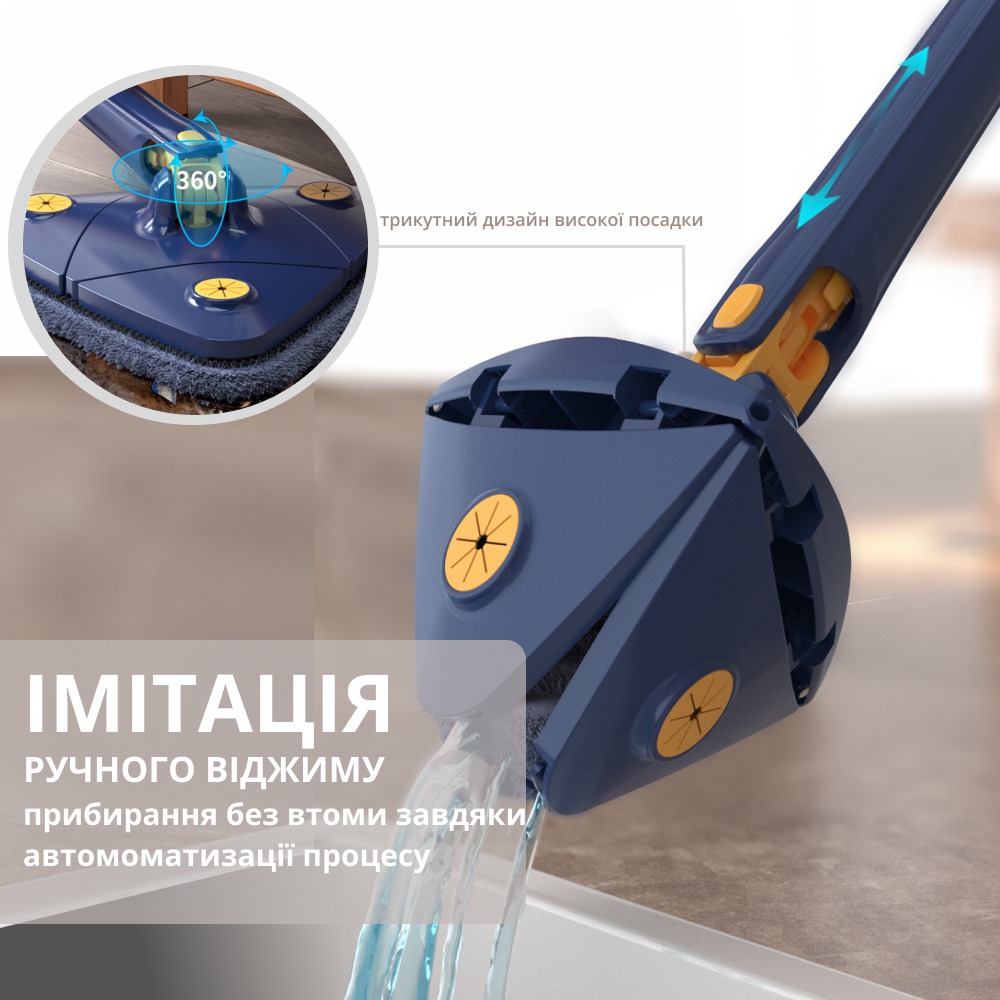 Неймовірно зручна швабра, що імітує ручне миття. Вона полегшує прибирання, завдяки своїй формі, адже увесь бруд буде вимито з будь-якого куточка вашого житла. Ця швабра ретельно збере увесь пил, але не залишить плям ні на підлозі, ні на склі. Зручність полягає й у тому, що вам не доведеться бруднити руки для віджиму ганчірки, адже автоматичний механізм зробить це за вас.