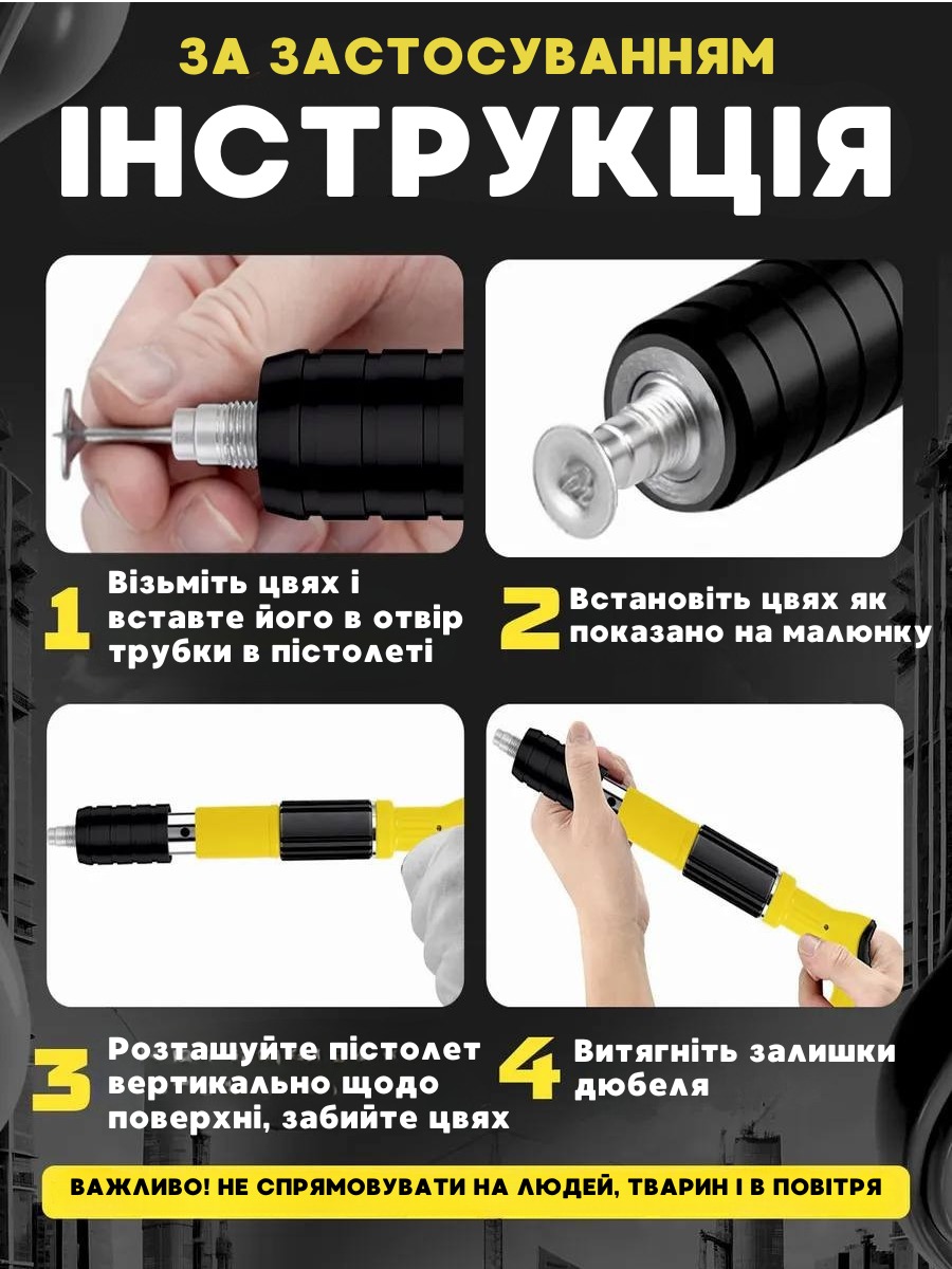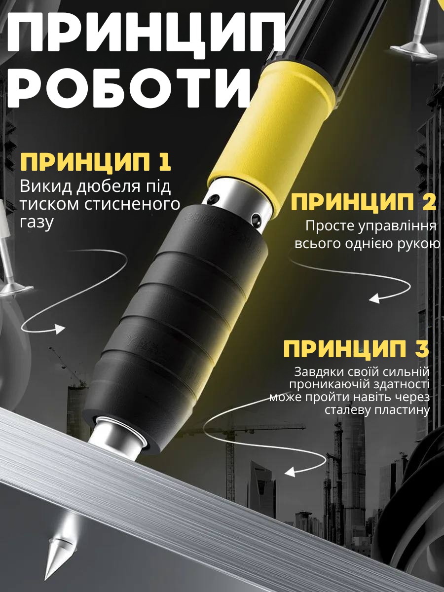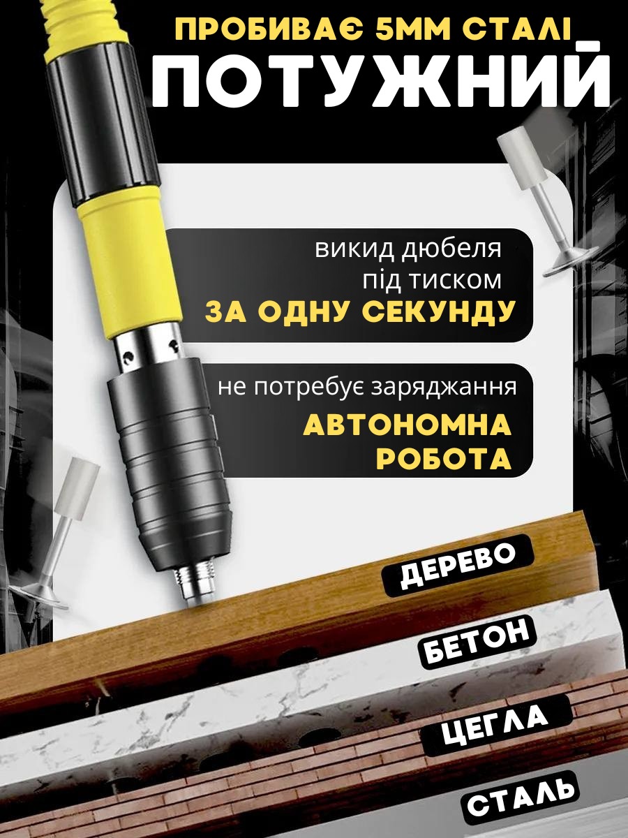 - Механізм : ручний пневмоінструмент для забивання цвяхів