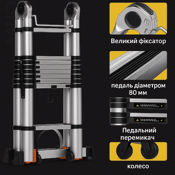 Тип конструкції: телескопічна драбина з можливістю регулювання висоти