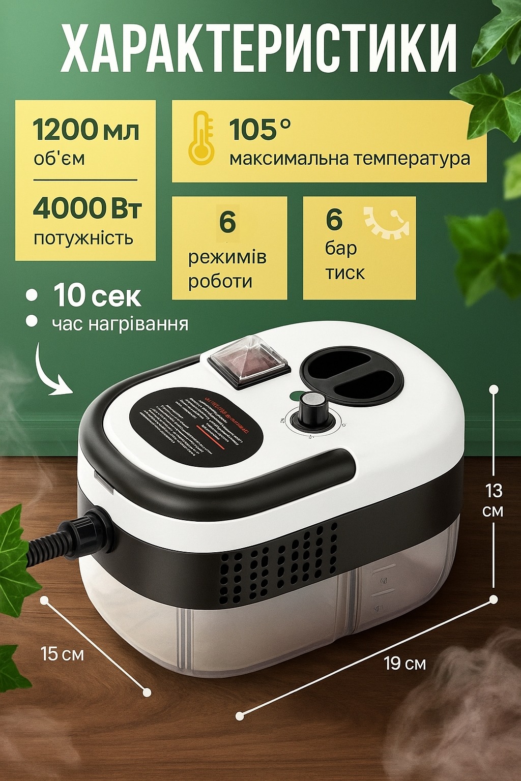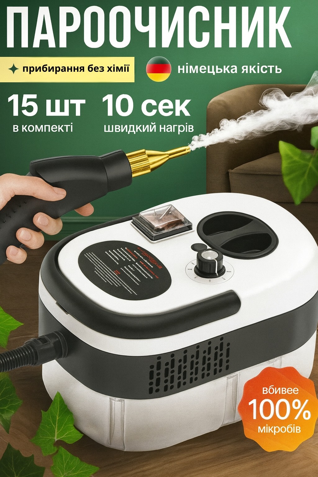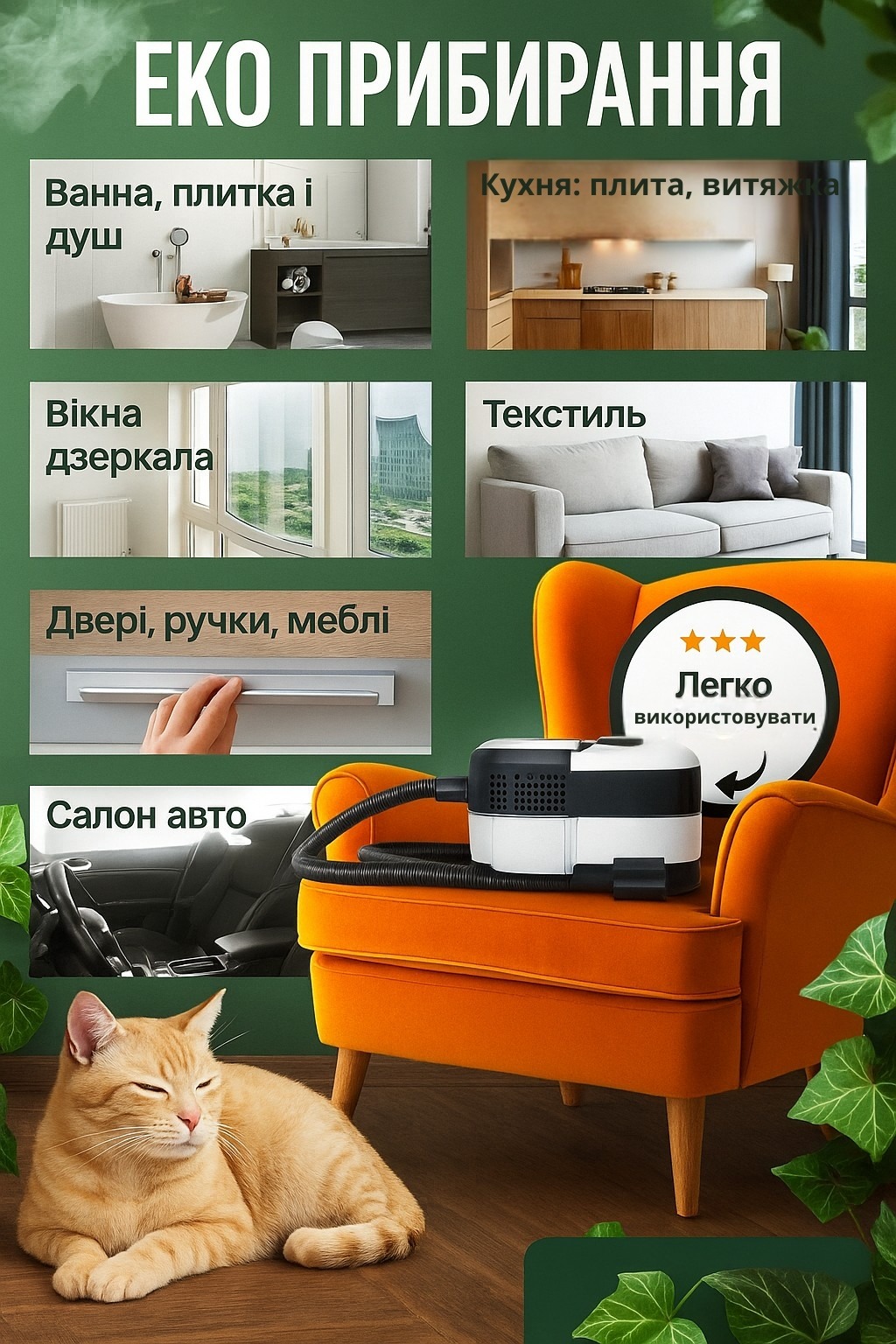 Багатофункціональний пароочисник — універсальний пристрій для ефективного та безпечного прибирання без використання хімії.