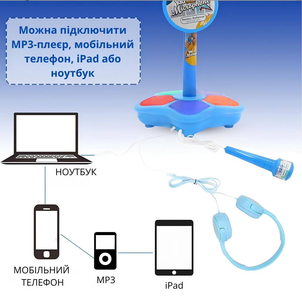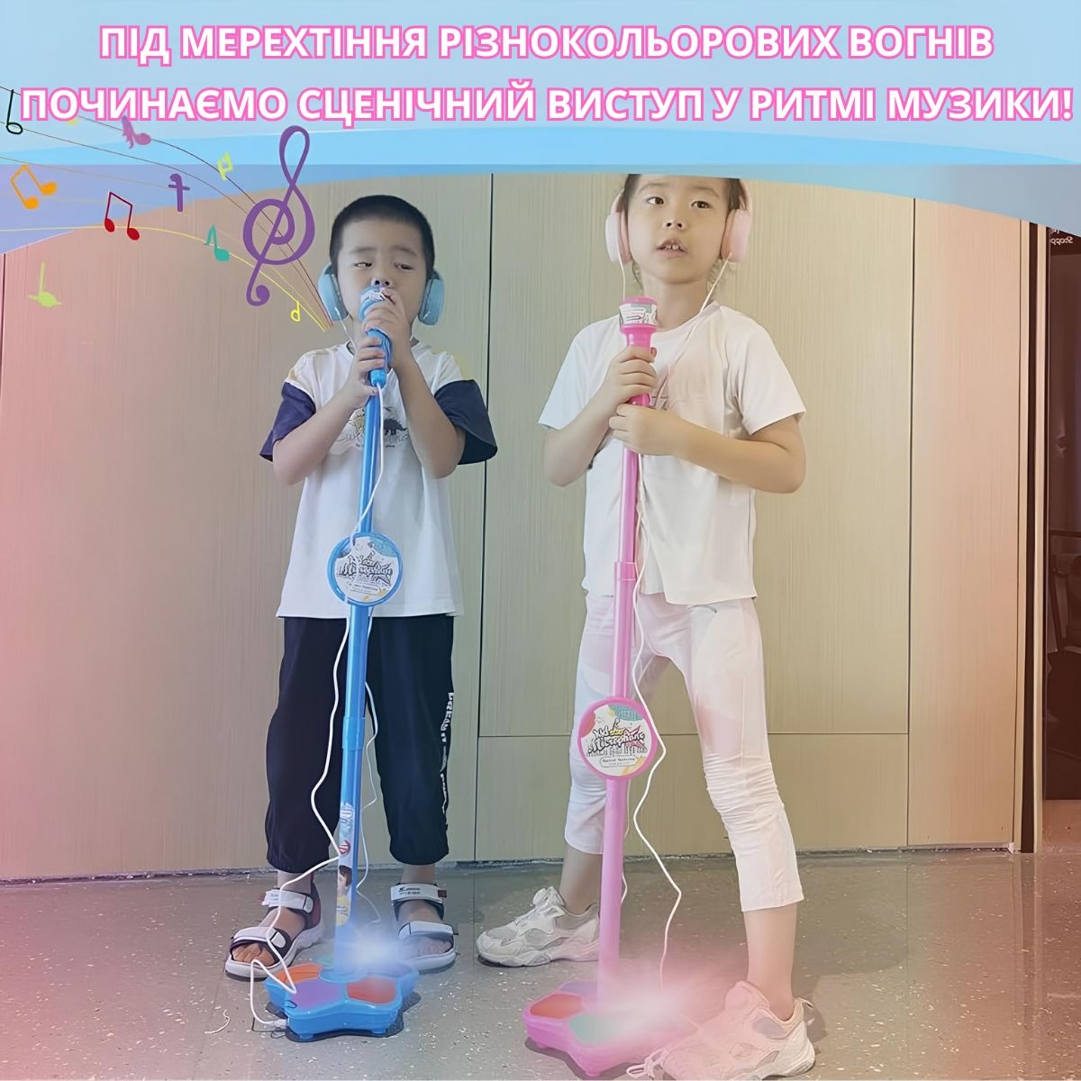 Дитячий караоке мікрофон зі стійкою, підсвіткою та вбудованими мелодіями