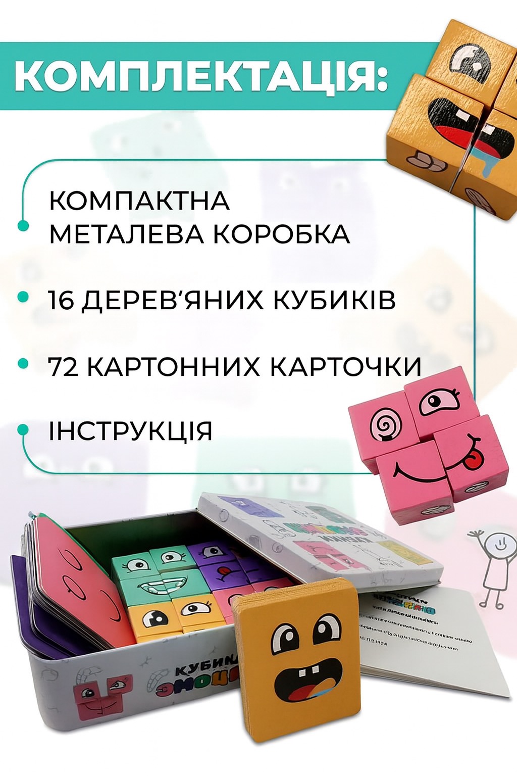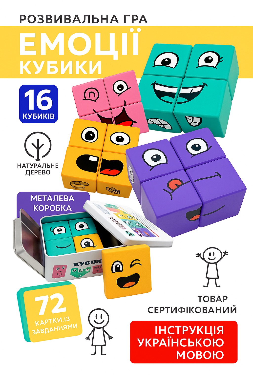 Яскрава, цікава та захоплива — кольорові кубики та кумедні емоції легко утримують увагу дитини.