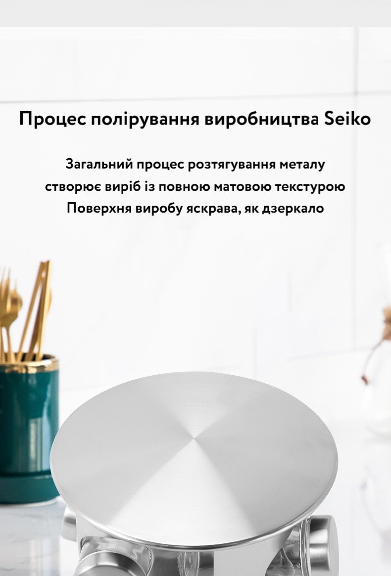 Підставка для спецій виготовлена з нержавіючої сталі та може обертатися по колу, що дуже зручно та практично.