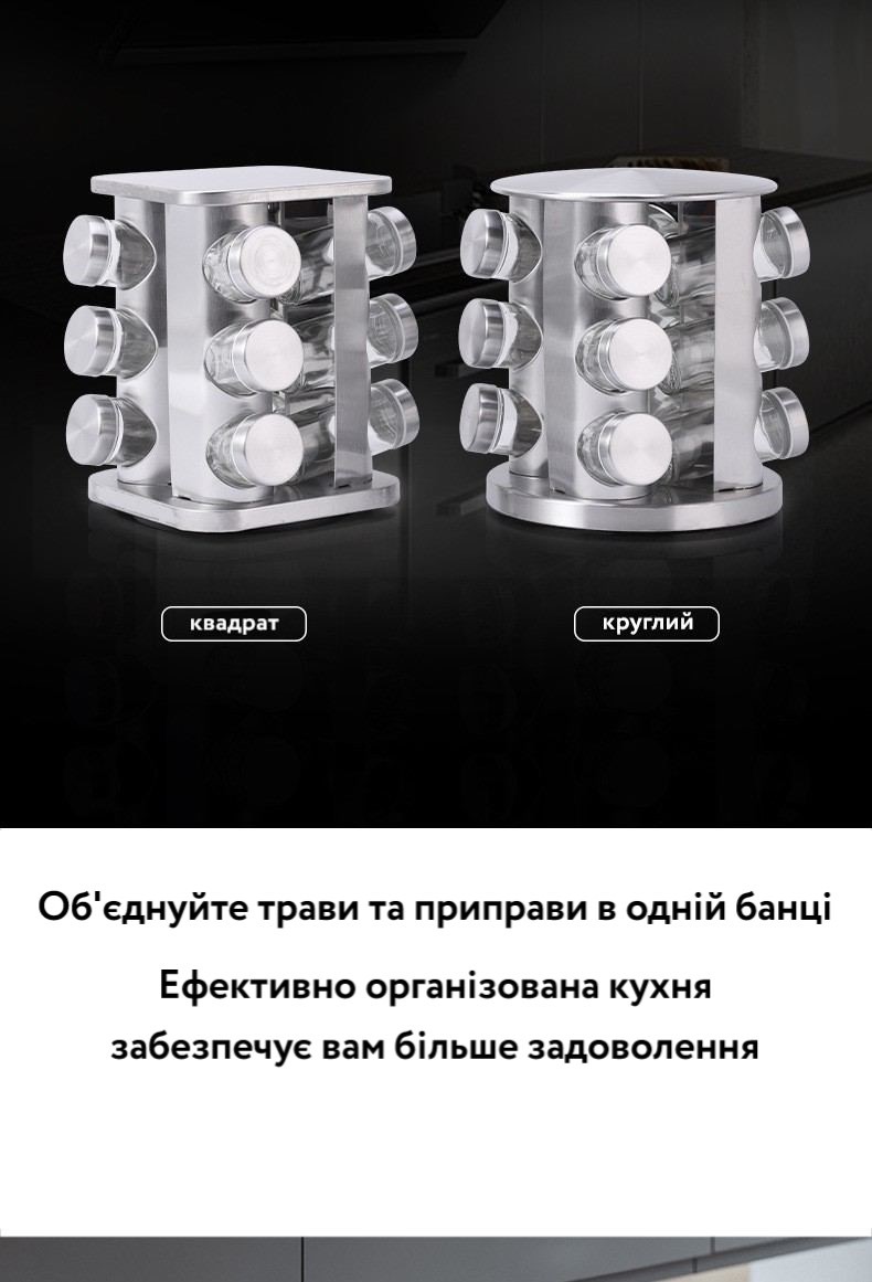 | Комплектація | 12 скляних ємностей, обертаюча підставка, заводська упаковка |
