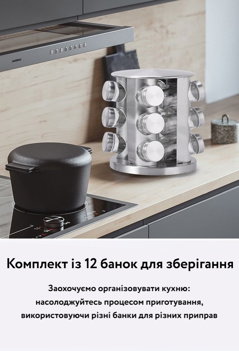 Набір карусель для спецій 12 скляних ємностей з підставкою, що обертається з нержавіючої сталі.