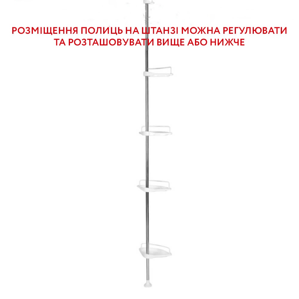 Поличка для ванної кімнати, кутова, телескопічна полиця
