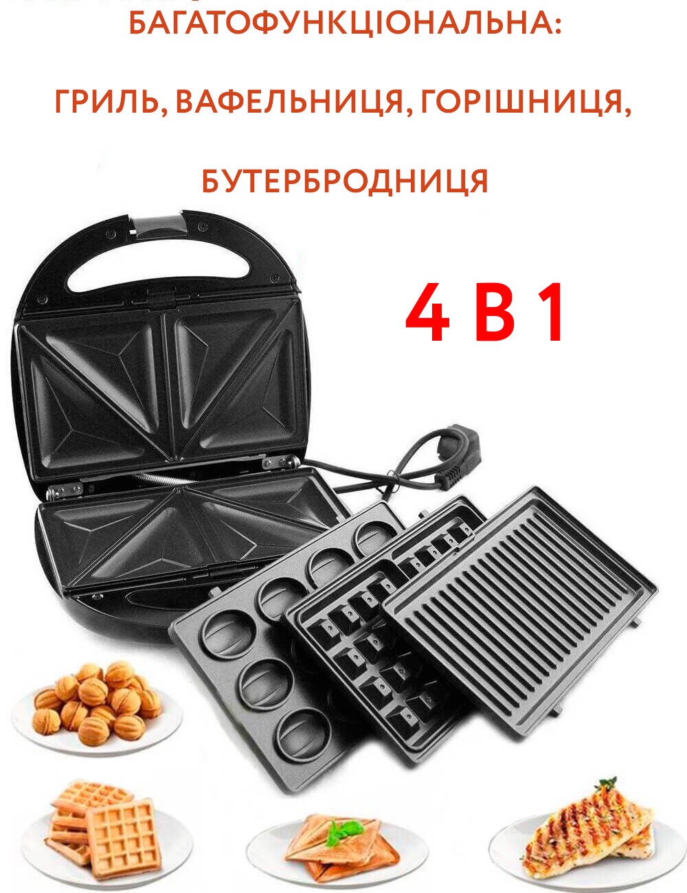 Вафельниця 4в1: гриль, вафельниця, бутербродниця, ліщина