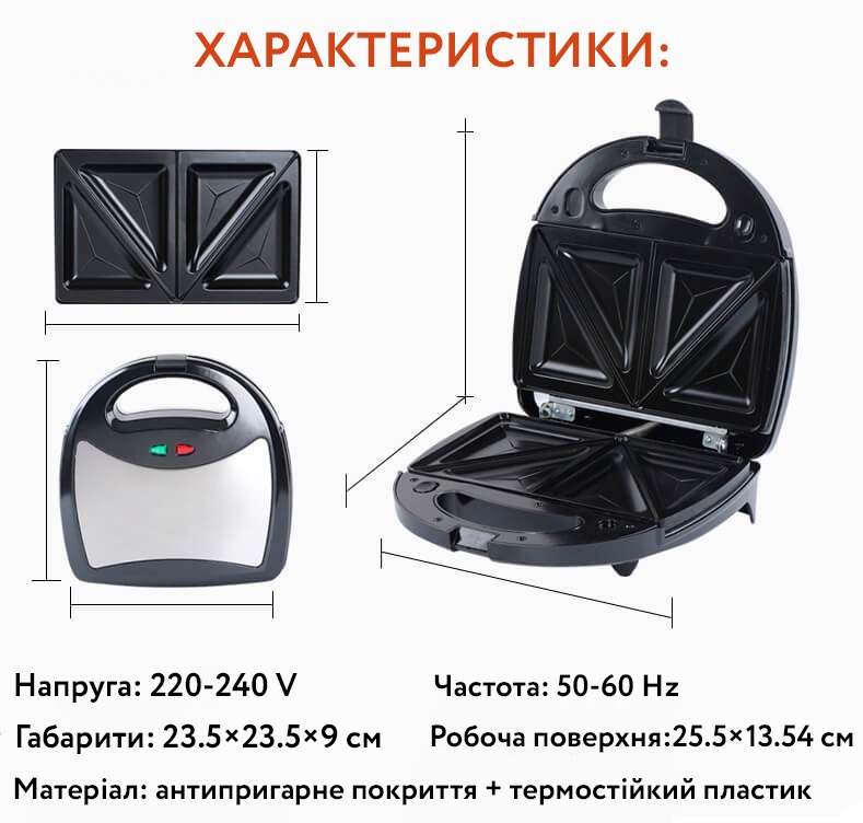 Опис:Бутербродниця - це якісний пристрій, який дозволить вам приготувати велику кількість страв.