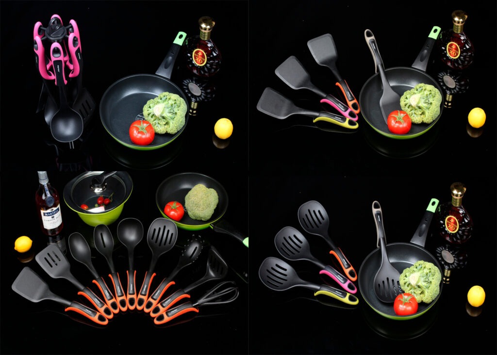 Використовуючи кухонне приладдя, можна значно спростити процес та скоротити час приготування страв. Приладдя можна використовувати для посуду з тефлоновим покриттям. Такий набір стане гарним та практичним подарунком, і довго прослужить помічником на кухні!