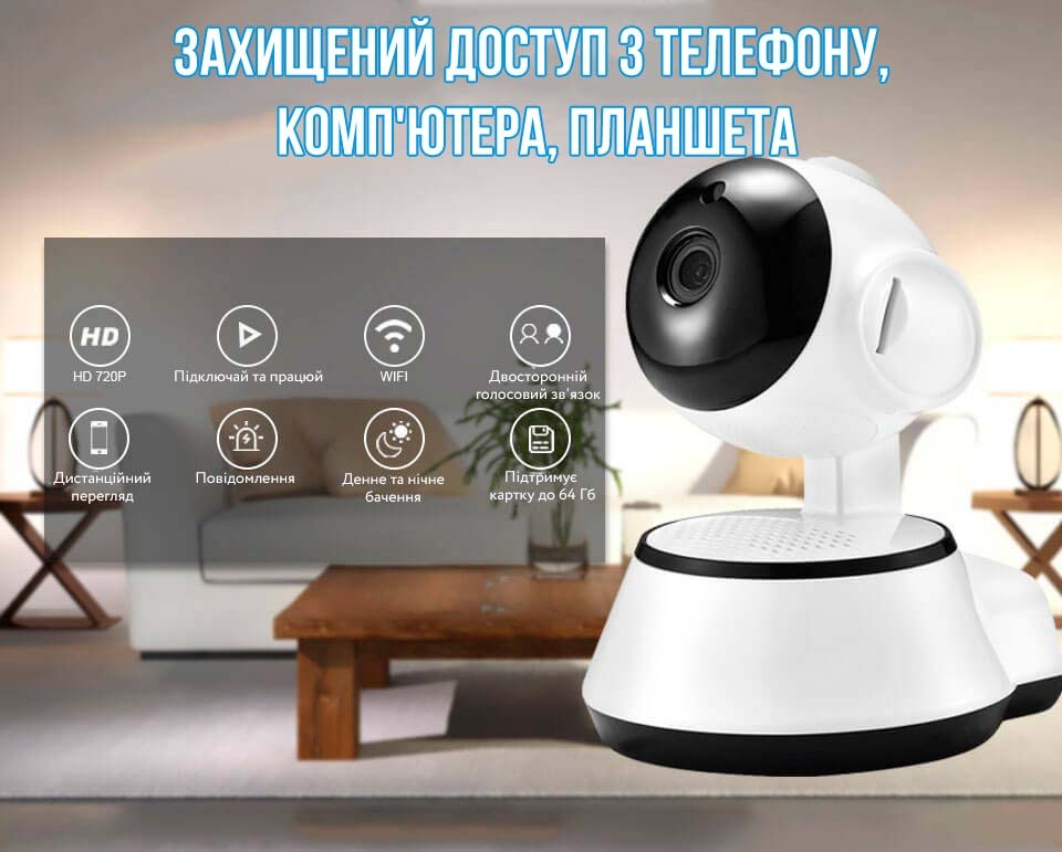 Поворотна IP камера з Wi-Fi відеоспостереження, нічна зйомка, відеоняня