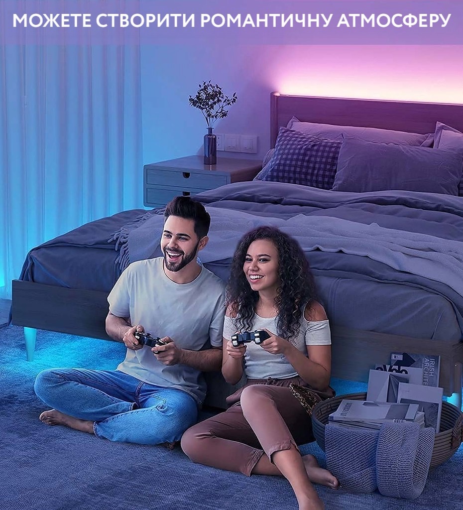 Світлодіодна стрічка з пультом - прекрасний інтер'єрний аксесуар. Її можна застосувати для підсвічування стель, стін, телевізора, арки, стелі, барні стійки - та чого завгодно, а пульт управління дозволить вибрати стиль освітлення за вашим смаком та настроєм.