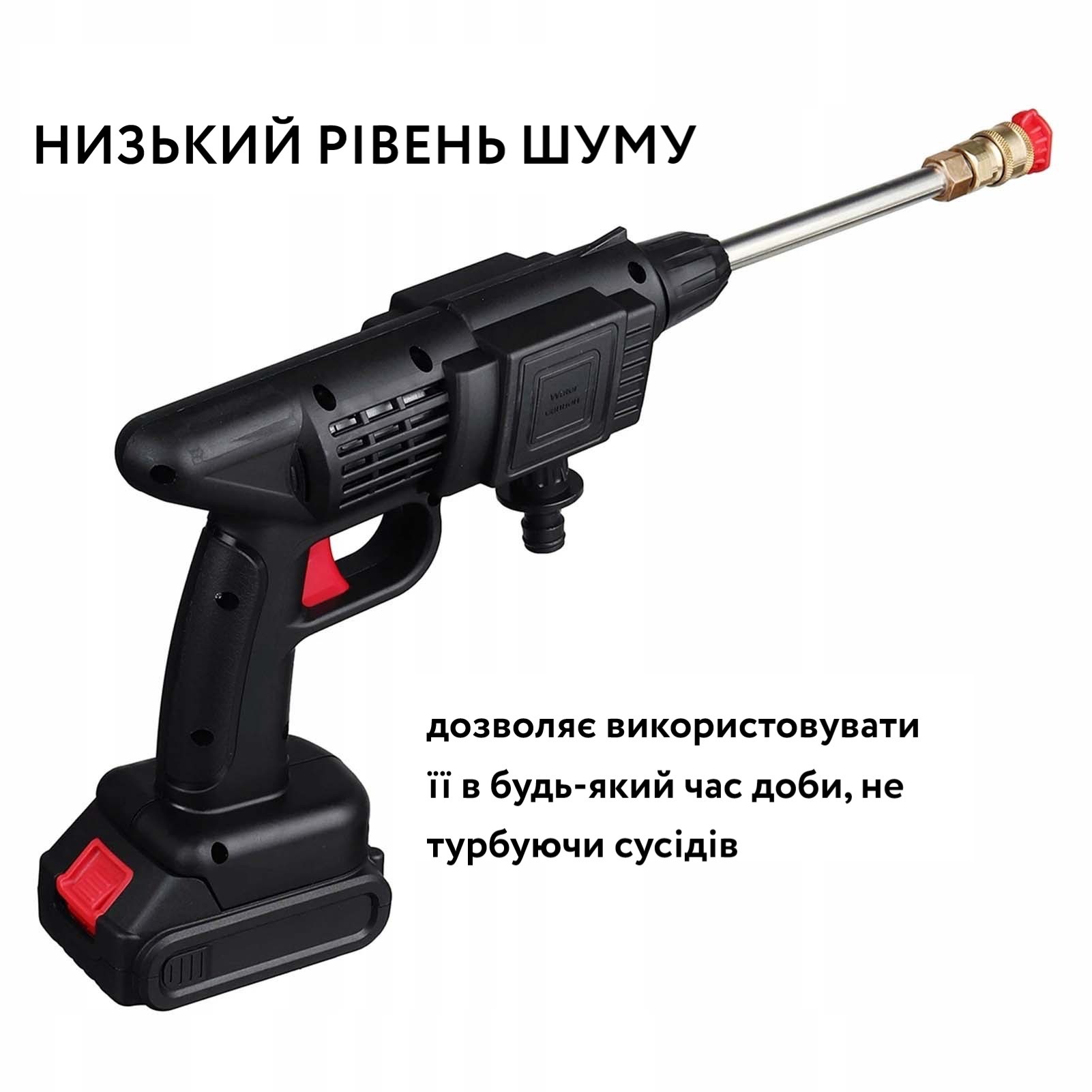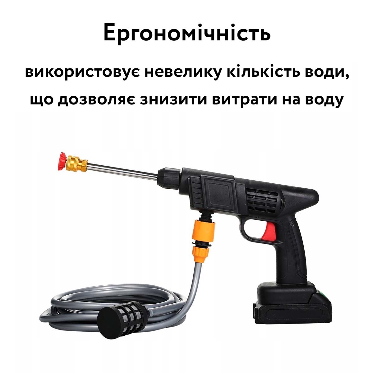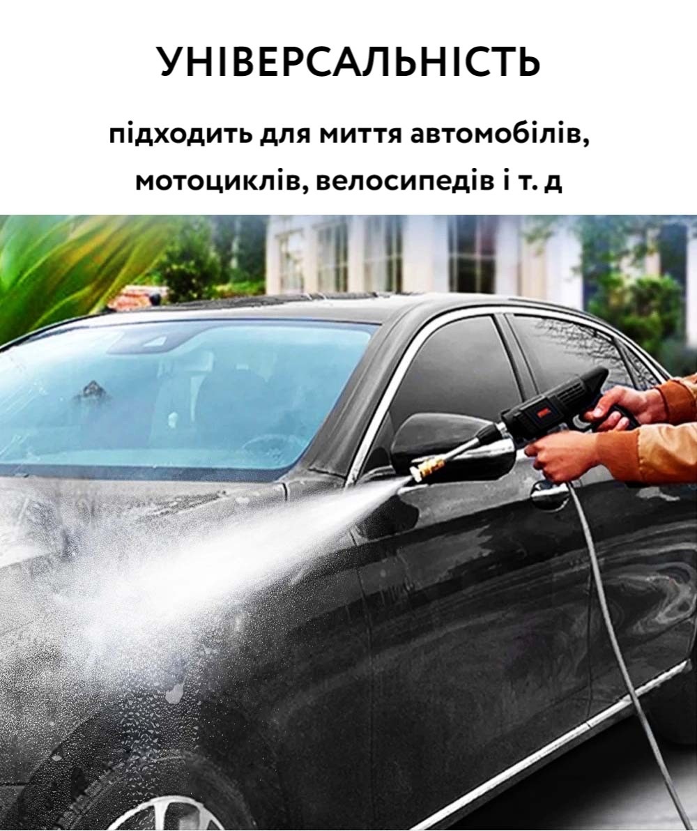 Автономна робота: Вбудований акумулятор дає змогу використовувати мийку без під'єднання до джерела електроживлення, що особливо зручно під час миття автомобілів на вулиці або поза міських умов.